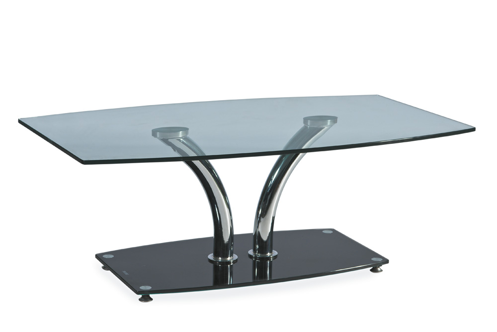 Atraktívny konferenčný stolík Kenzo B ponúka dvojfarebnú kombináciu podstavca v chrómovo-čiernom prevedení a taktiež netradičné dizajnové riešenie. Vrchná časť stola je tvorená tvrdeným priehľadným sklom čo zaručí ľahkú údržbu.