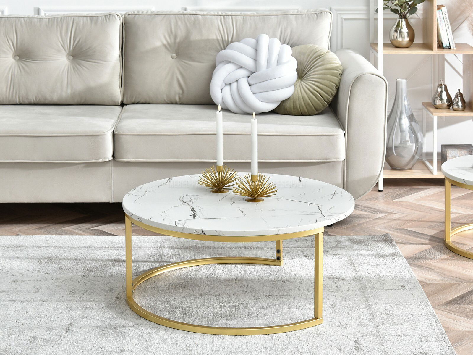 Konferenčný stolík Kolja Stolik Xl (biela + zlatá)