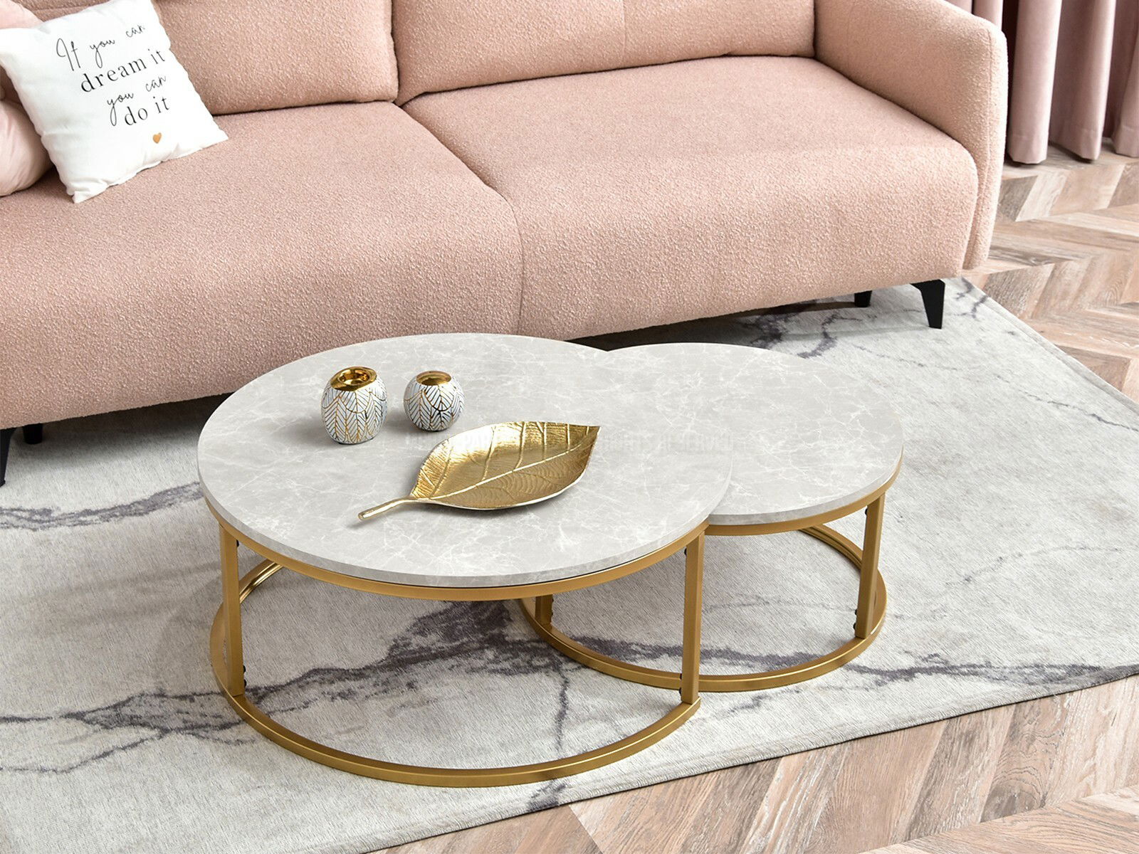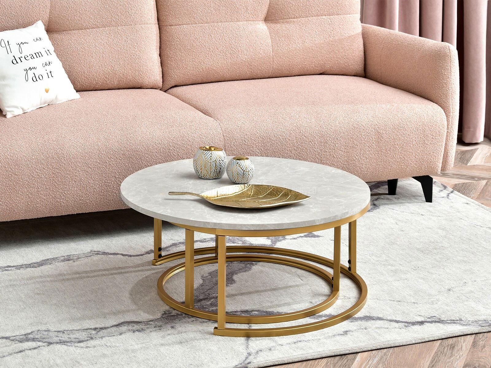 Konferenčný stolík Kolja Zest Xl (sivý mramor + zlatá)