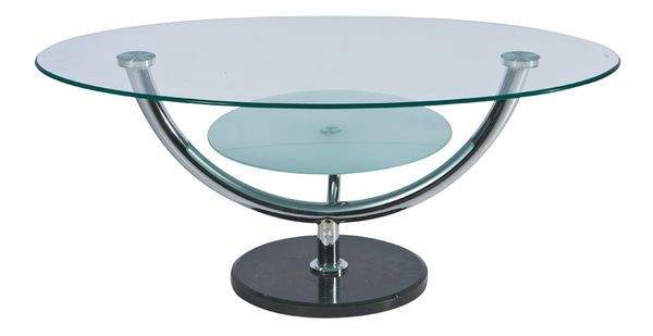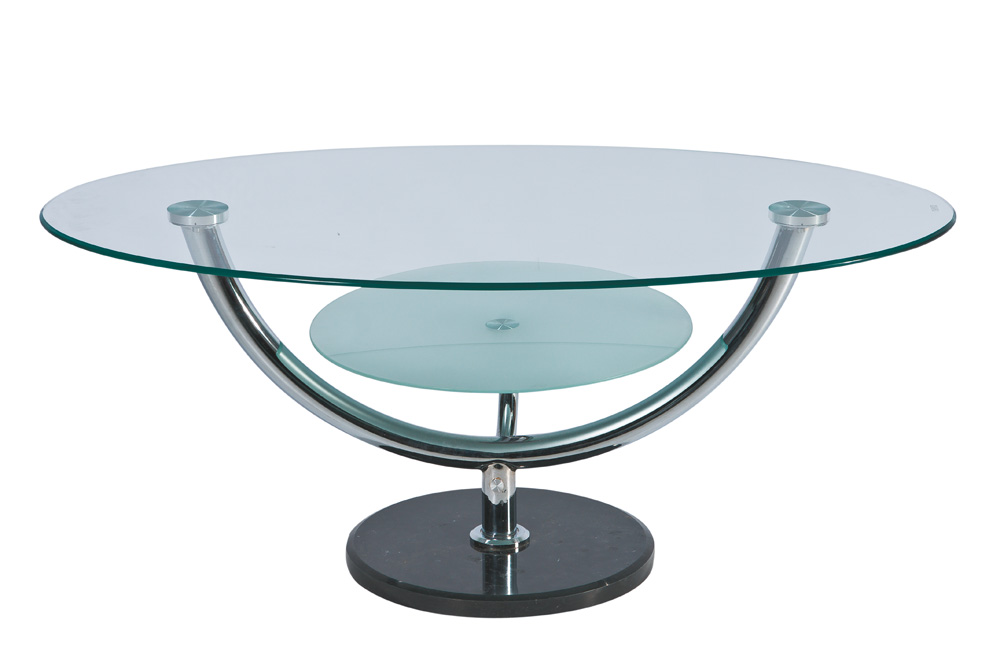 Nevšedný dizajn Vám ponúkne konferenčný stolík Laura s oblúkovou konštrukciou vo farbe chrómu a okruhlím tvarom vrchnej časť z priehľadného skla bude pekný doplnkom Vašej pracovne či obývacej izby.