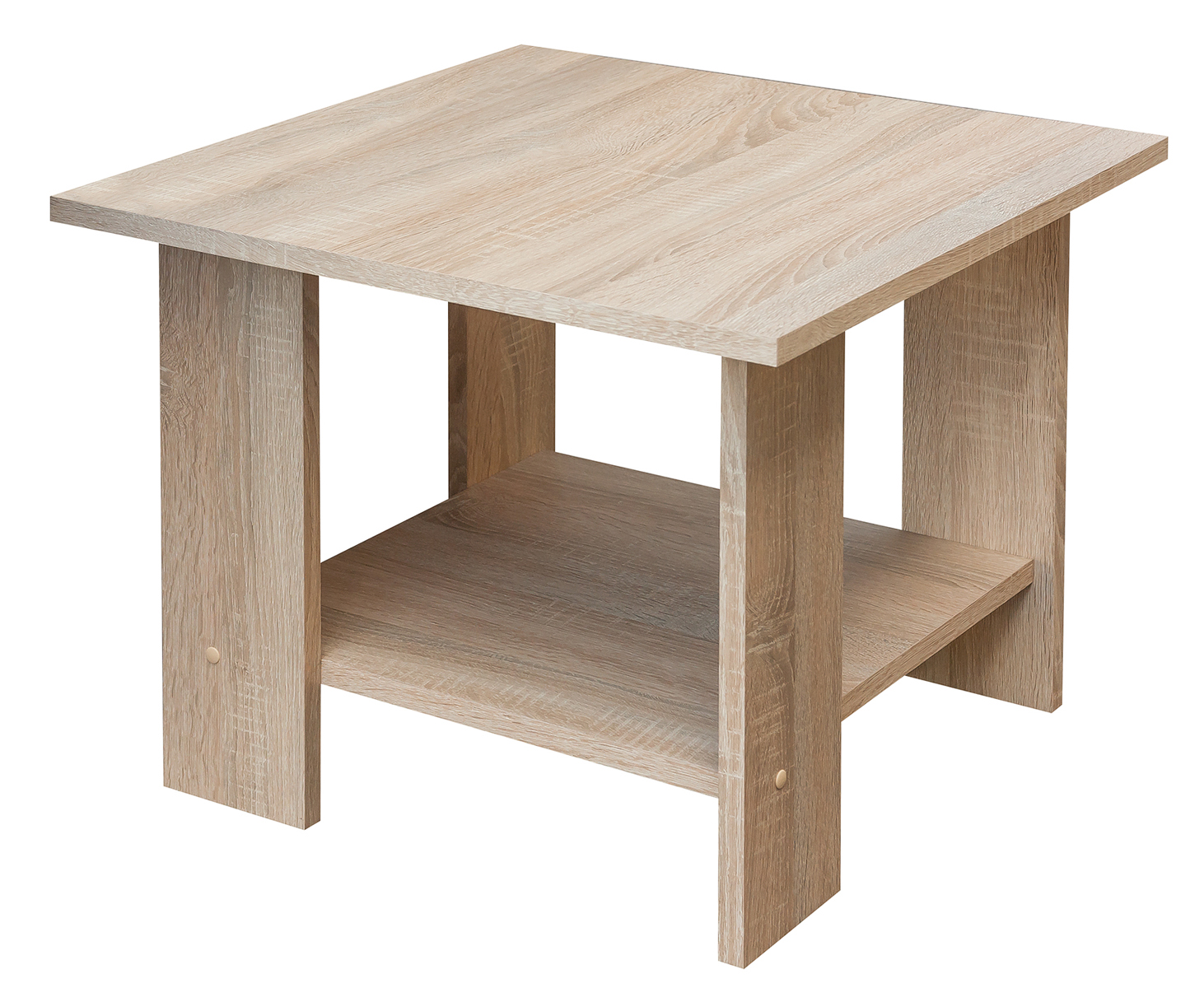 Jednoduchý konferenčný stolík Lena je vyrobený v obľúbenom farebnom prevedení dreva dub sonoma. Pod hornou doskou sa nachádza praktická polička.