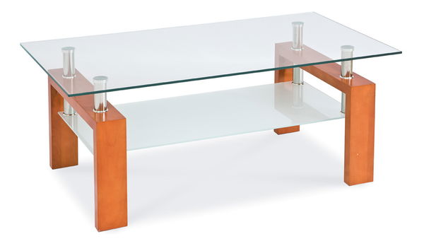 Lisa II je zaujímavý konferenčný stolík, ktorý Vám ponúkne jednoduchý no efektný dizajn, ktorý sa hodí do akejkoľvek obývacej izby. Stolík má dve časť, kde vrchná časť je z priehľadného skla a spodná časť z mliečneho skla plní odkladaciu funkciu. Výška stolíka je 55 cm. Nohy stolíka sú z dreva vo farbe kalvados (oranžová).