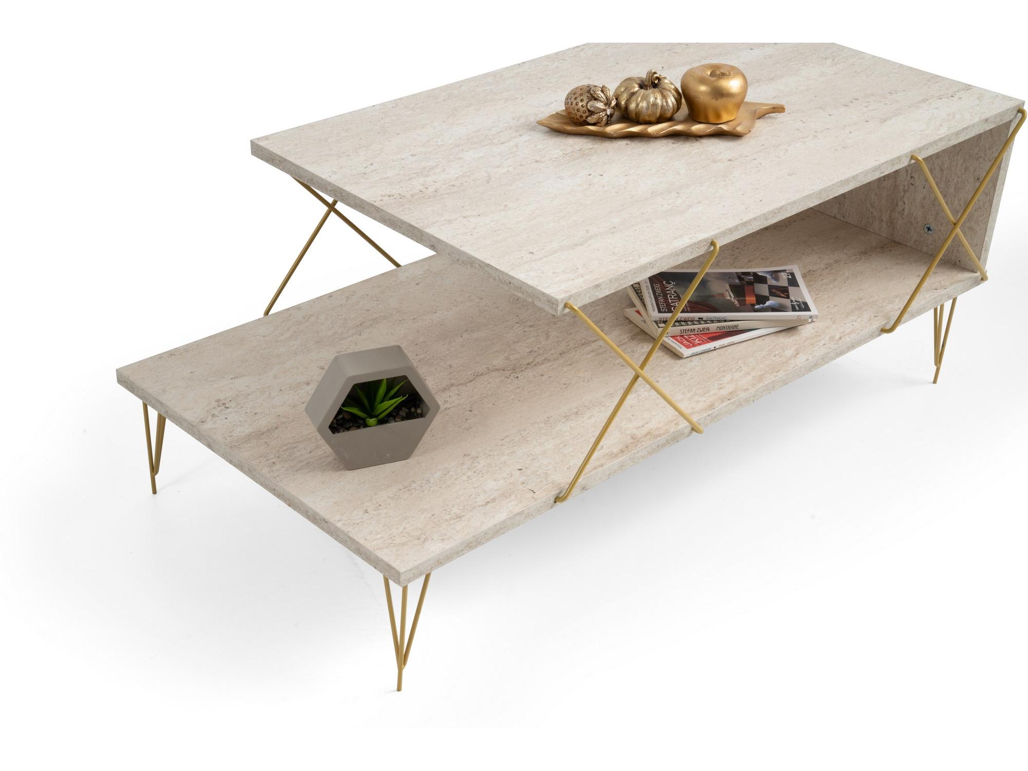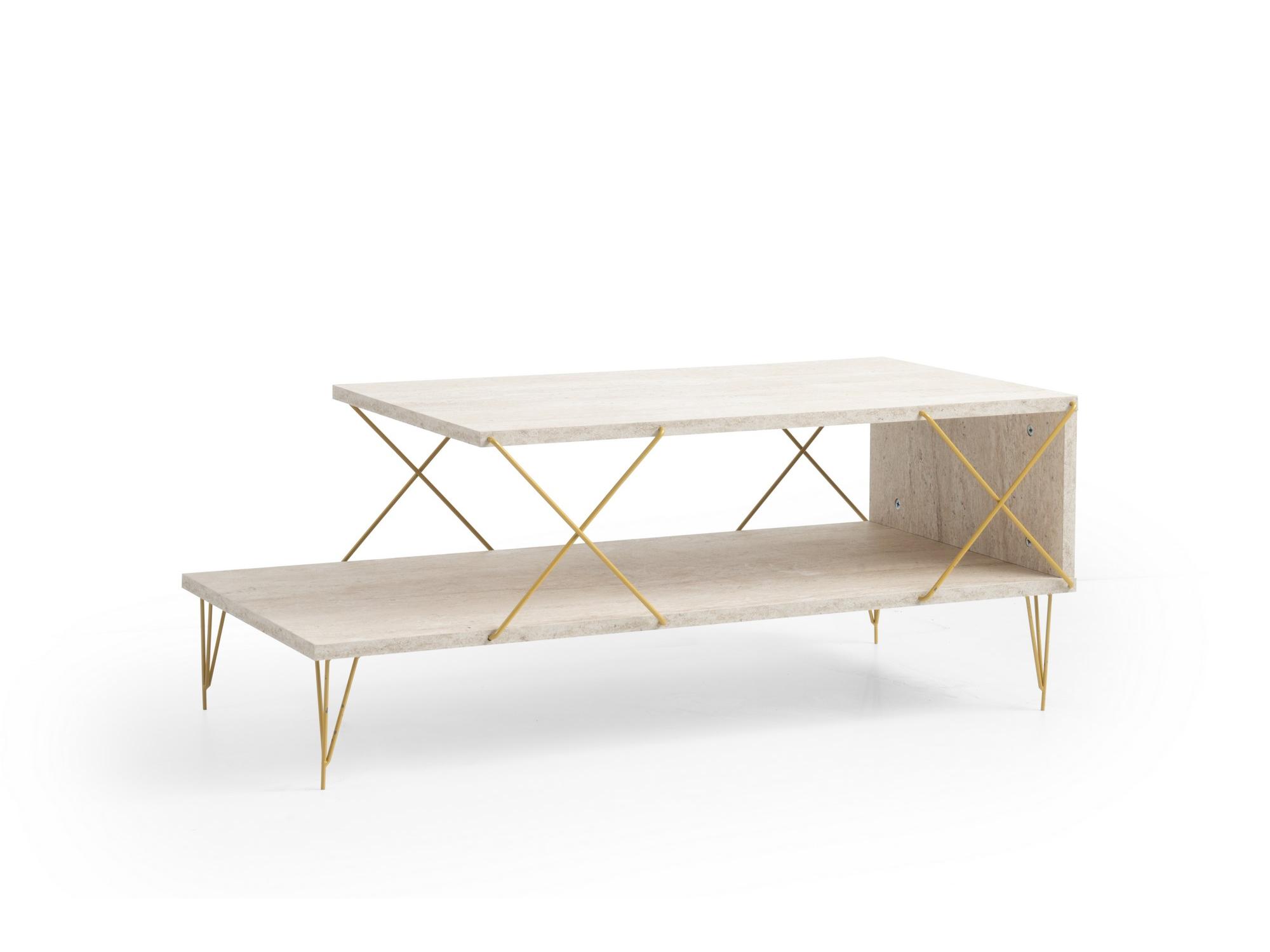 Konferenčný stolík Loira (zlatá + mramor svetlý)