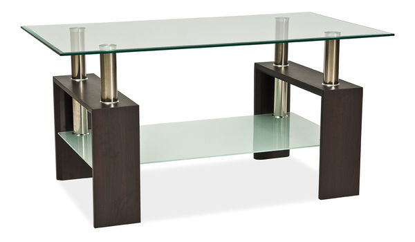 Jednoduchý no účelný stolík Lisa od značky Signal má dve vrstvy, kde vrchná je z priehľadného tvrdeného skla a spodná odkladacia časť je z mliečneho skla. Nohy tohto stolíka sú drevené v tmavej farbe. Stolík ponúka výšku 45 cm.