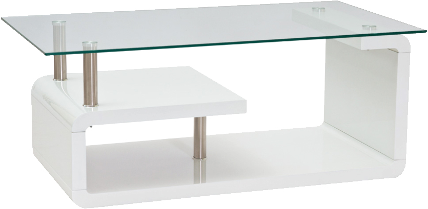 Konferenčný stolík so zaujímavým a moderným dizajnom z kvalitnej MDF nalakovanej bielou farbou a s presklenou odkladacou plochou zo skla.