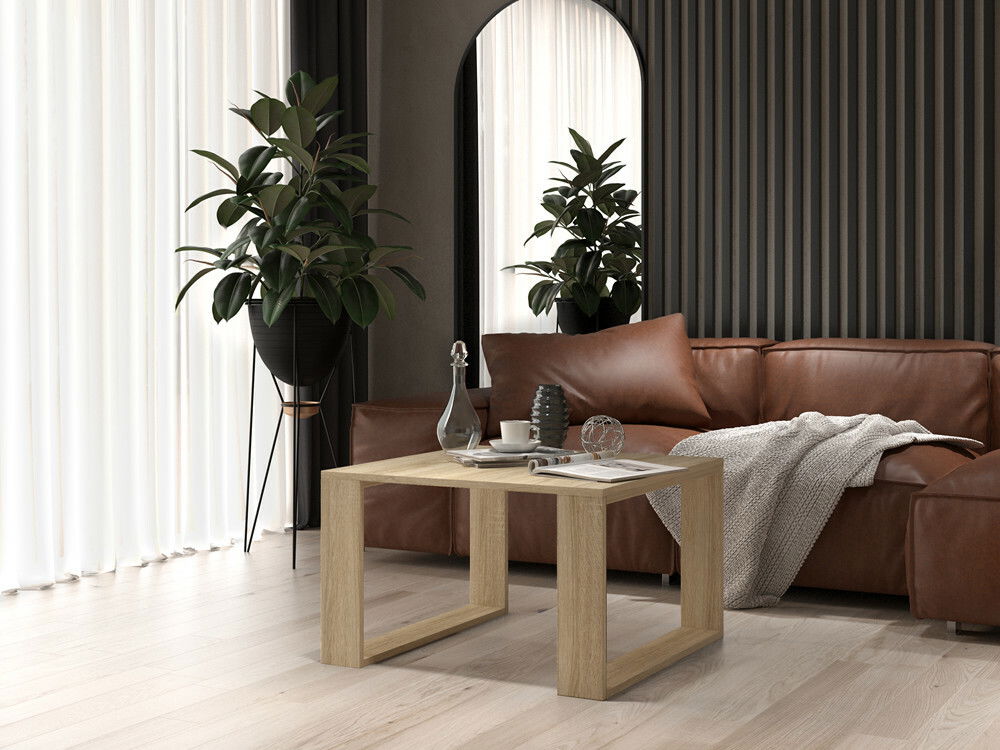Konferenčný stolík Maduro Mini 1 v elegantnej farbe dub sonoma je ideálnym doplnkom do vášho obývacieho priestoru. Jeho moderný dizajn a praktická funkčnosť z neho robia skvelé miesto pre servírovanie kávy alebo odkladanie kníh a dekorácií. Vyrobený z kvalitnej laminovanej drevotriesky, stolík je odolný voči poškriabaniu a ľahko sa udržuje. S rozmermi 67 cm x 67 cm a výškou 40 cm ponúka dostatok priestoru, pričom jeho zaujímavé nohy dodávajú nábytku jedinečný vzhľad. Tento kus nábytku sa stane neodmysliteľnou súčasťou vášho domova.