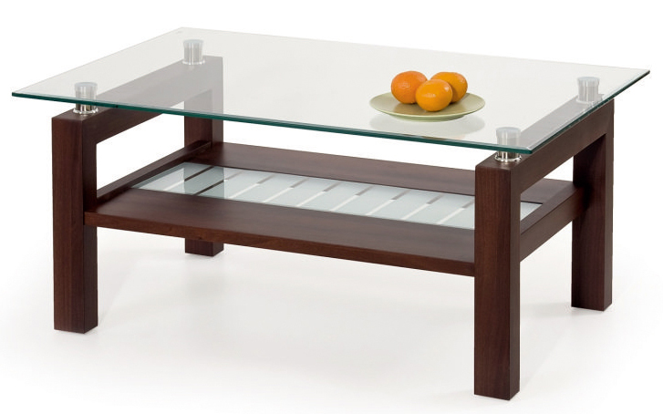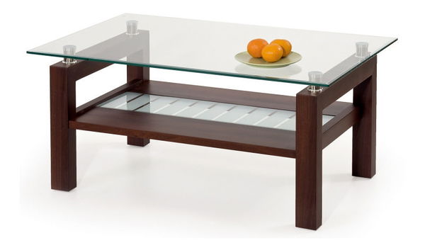 Elegantný konferenčný stolík svojim dizajnom sa bude skvele vynímať v obývacej izbe, pracovni, kancelárii či inom reprezentatívnom priestore. Konštrukcia z laminovanej MDF je vo farbe dreva wenge. Vrchná doska stola je sklenená a umiestnená na štyroch lesklých nožičkách. Dolná odkladacia polička je z časti vo farbe konštrukcie a v strede presklená. Sklo je pruhovane vzorované. Strieda sa na ňom číre a mliečne sklo.