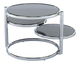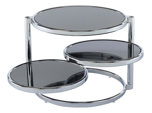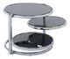 Okrúhly konferenčný stolík zaujme svojim dizajnom a funkčnosťou. Ak je potreba využiť stolík vo väčšom priestore, stačí iba pootočiť dve spodné úrovne a rázom dostávate priestranný stolík s dostatočným odkladacím priestorom. Čierne sklo dopĺňa chromová konštrukcia.
