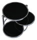 Okrúhly konferenčný stolík zaujme svojim dizajnom a funkčnosťou. Ak je potreba využiť stolík vo väčšom priestore, stačí iba pootočiť dve spodné úrovne a rázom dostávate priestranný stolík s dostatočným odkladacím priestorom. Čierne sklo dopĺňa chromová konštrukcia.