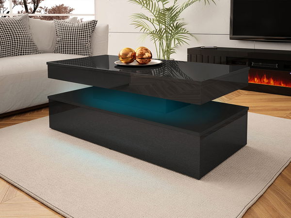 Konferenčný stolík Mirjan Lestirola (čierna + lesk čierny) (s LED osvetlením)(výpredaj)