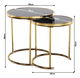 Ak hľadáte stolík, ktorý posluži ako dekorácia s jedinečným charakterom, set 2 stolíkov Monet by mali zdobiť centrálnu časť vašej obývacej izby. Monet sa vyznačuje nielen originálnym dizajnom, ale vnesie Vám nádych luxusu a extravagancie. Konštrukcia je vyrobená z kovu v zlatom prevedení. Vrchná časť je z tvrdeného skla v čiernej farbe. Oživte Váš interiér týmto vkusným nábytkom.