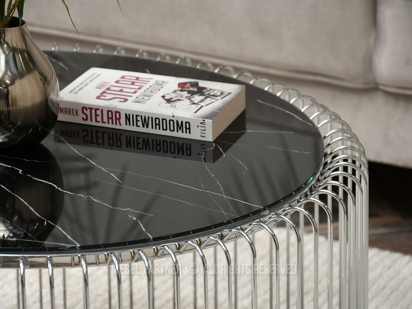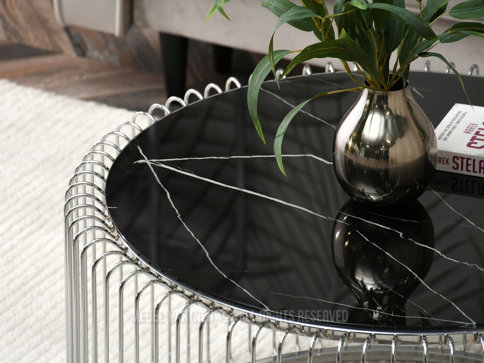 Konferenčný stolík Nils Xl (čierny mramor + chrómová)