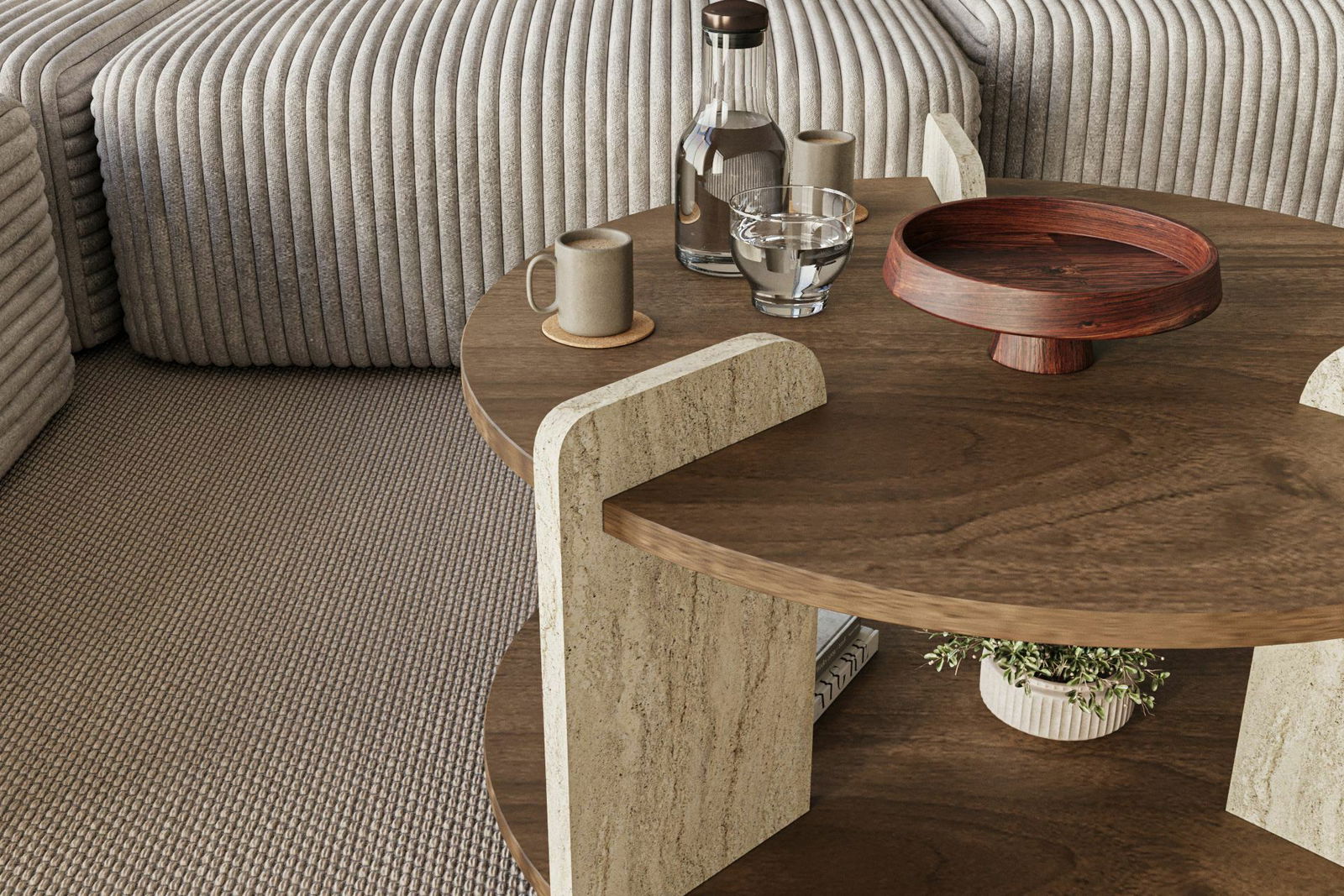 - Konferenčný stolík Oaly 1 (travertín + orech)