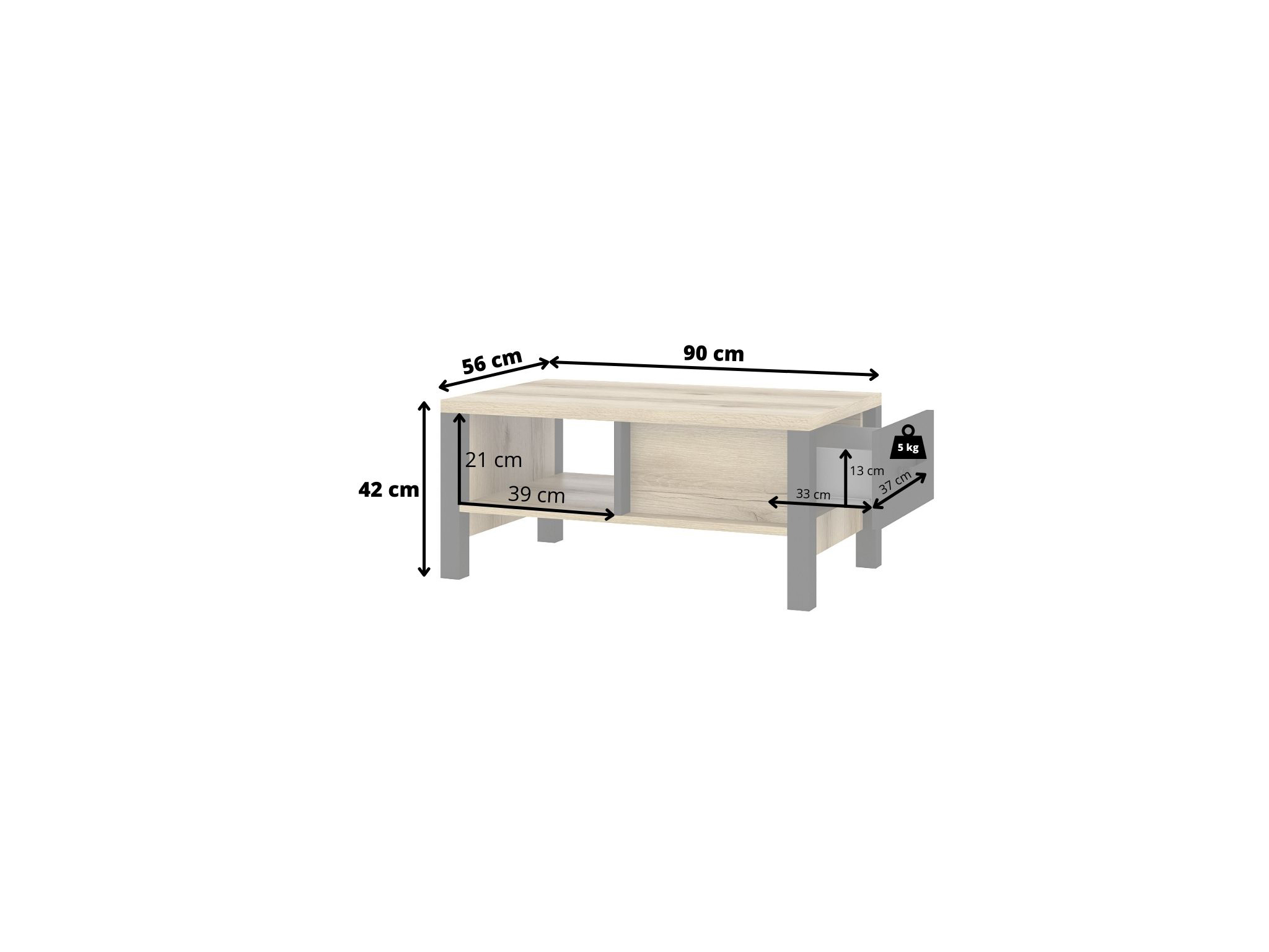 Konferenčný stolík Oralee Typ 99 (dub grand natural + čierna matná) je praktický a elegantný doplnok do vášho obývacieho priestoru. S výškou 42 cm a hĺbkou 56 cm ponúka dostatok miesta pre časopisy, knihy, ovládače k TV a iné drobnosti, ktoré by ste chceli mať vždy po ruke. Spodná polica a zásuvka umožňujú úložný priestor, ktorý vám pomôže udržať váš priestor uprataný. Kovové nožičky dodávajú stolíku stabilitu a pevnosť, zatiaľ čo laminovaná doska z dub grand natural a čierna matná farba dodávajú stolíku moderný vzhľad. Úchytky z plastu sú praktické a umožňujú jednoduché otváranie zásuvky. Stolík Oralee Typ 99 prináša do vášho interiéru lesný nádych a industriálny štýl, ktorý určite upúta pozornosť vašich hostí.