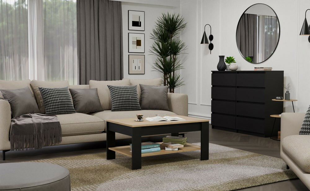 ZobraziťKonferenčný stolík Oxido 1 je dokonalým doplnkom pre moderné interiéry, ktorý kombinuje elegantný dizajn s praktickosťou. Jeho minimalistická konštrukcia v kombinácii s farbami dub artisan a čierna dodáva nábytku sofistikovaný vzhľad, ktorý sa hodí do obývačky, kancelárie alebo relaxačného kútika. Funkčná dolná polica poskytuje ideálne miesto na uskladnenie kníh, časopisov či ovládačov, zatiaľ čo stabilná laminovaná doska zaručuje dlhú životnosť a jednoduchú údržbu. Tento stolík je skvelou voľbou pre tých, ktorí hľadajú štýlový a praktický nábytok.