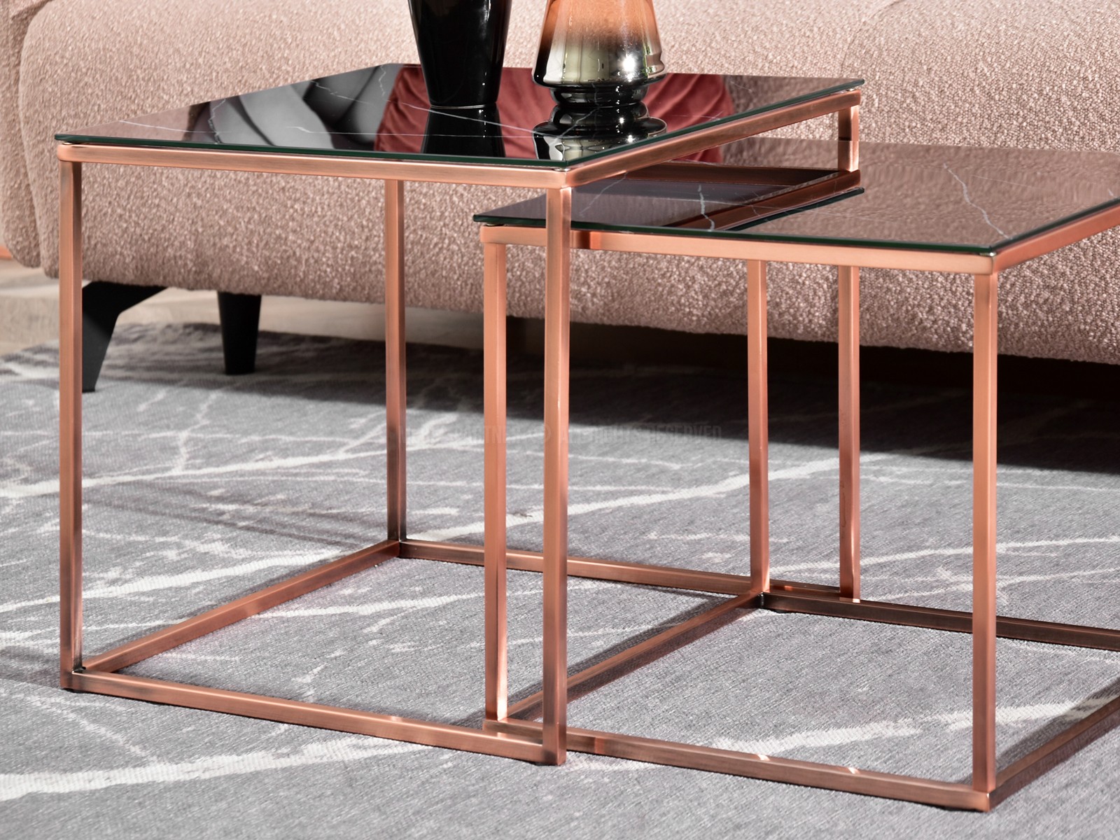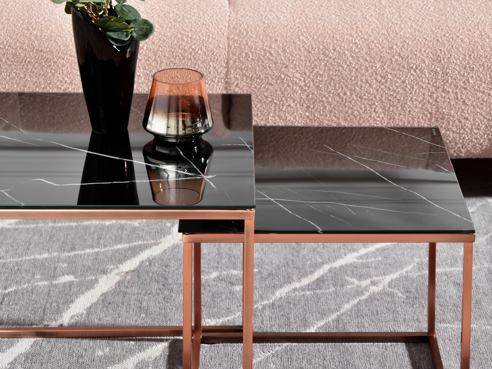 Konferenčný stolík Prana Law (čierny mramor + medená)