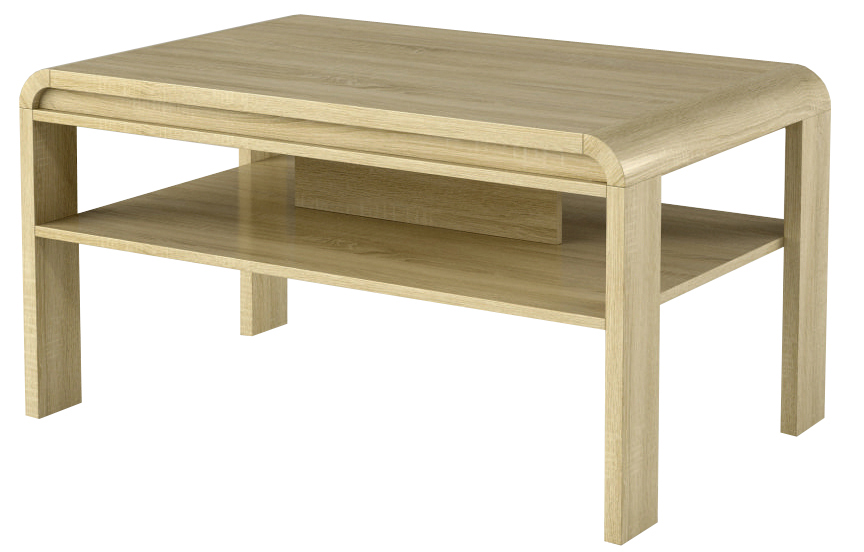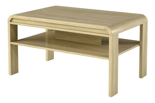 Elegantný konferenčný stolík nájde svoje miesto v obývacej izbe, pracovni či kancelárii. Univerzálny dizajn skvele zapadne ako do moderne, tak aj klasicky zariadeného priestoru. Elegantne zaoblená hrana vrchnej dosky pôsobí trendovo a zároveň chráni pred prípadným úrazom. V spodnej časti je umiestnená praktická odkladacia polička. Je vyrobený v obľúbenom farebnom prevedení svetlého dreva dub sonoma.