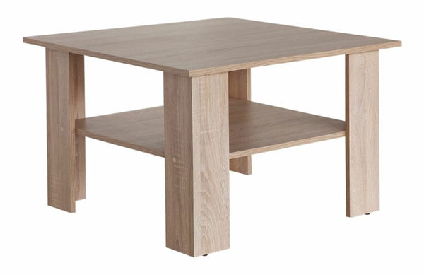 Štvorcový konferenčný stolík vhodný do obývacích izieb, alebo kancelárii. Stolík má pod hornou doskou praktickú odkladaciu poličku. Kvalitu spracovania potvrdzuje použitie odolných ABS hrán na všetkých miestach rezu dosky. Farebné prevedenie na výber: jelša, orech, buk, dub Sonoma.