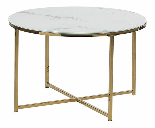 - Konferenčný stolík Qasim (biela a zlatá) (mramorový efekt)