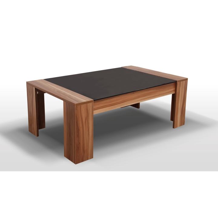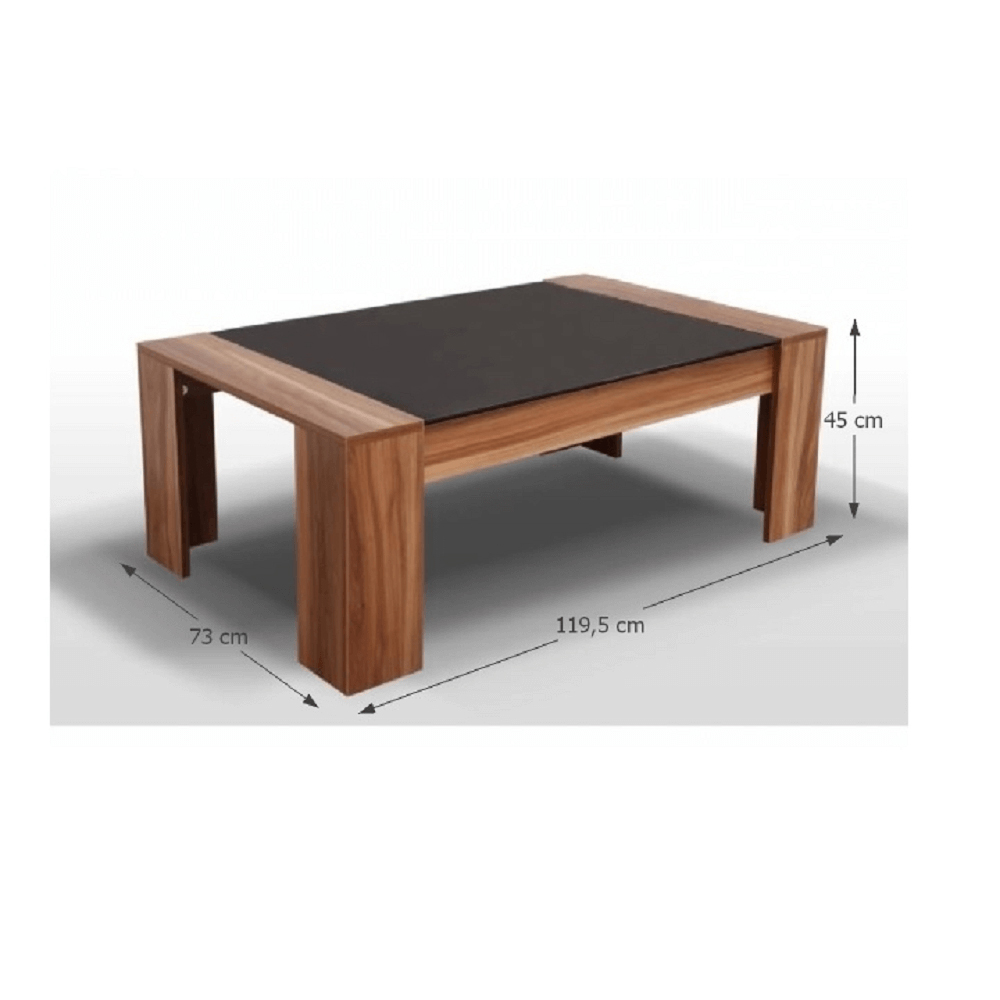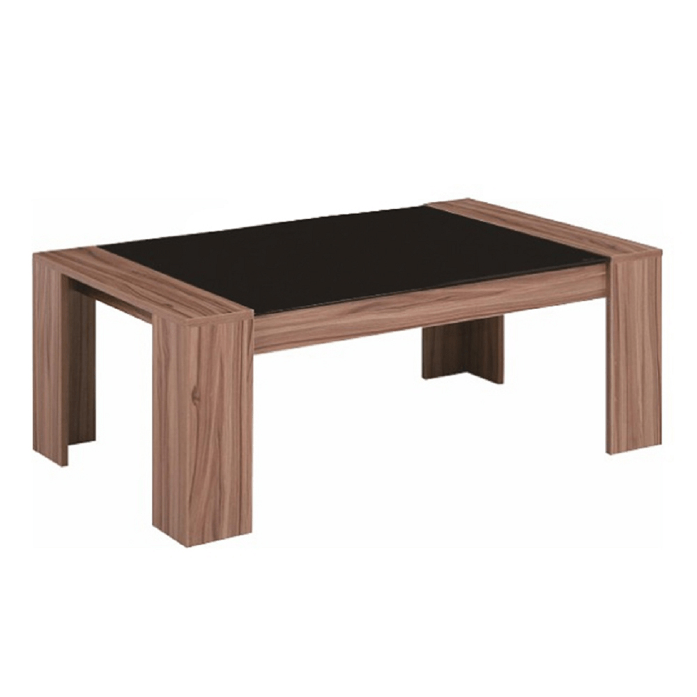 Konferenčný stolík Reymi sa pýši svojimi širokými nohami vyrobenými z laminovanej MDF. Na luxuse mu pridáva aj farba dreva orech, ktorú vhodne dopĺňa čierna vrchná doska z tvrdeného skla.
