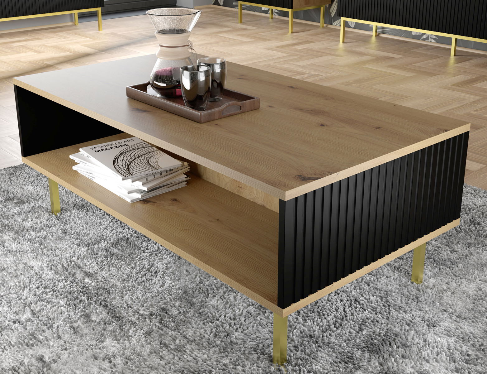 Konferenčný stolík Rowanna (dub artisan + čierna + zlatá)