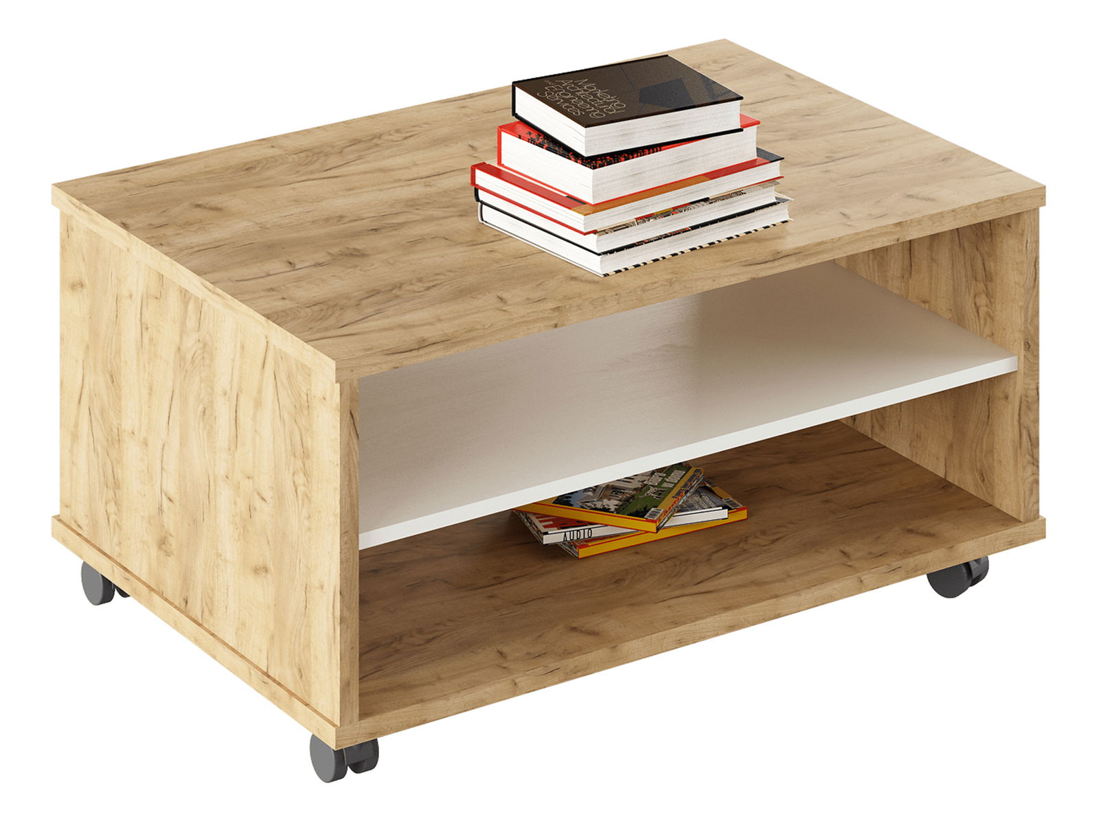 Konferenčný stolík Rumia 32 (dub artisan + biela) s rozmermi výšky 45,2 cm, šírky 90 cm a hĺbky 60 cm je ideálnym riešením pre váš rokovací priestor. Jeho praktickosť zvýrazňuje 4 kolieska, ktoré mu umožňujú ľahké presúvanie tam, kde bude potrebný. Konferenčný stolík Rumia 32 je vyrobený z kvalitnej DTD laminovanej vo farebnom prevedení dub artisan a biela. S jeho pomocou bude váš rokovací priestor nielen funkčný, ale aj štýlový.