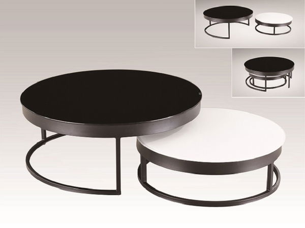 Oživte obývaciu izbu s touto sadou dvoch elegantných konferenčných stolíkov s unikátnym dizajnom. Sú okrúhle a zároveň ušetria priestor. Menší stolík sa dá pohodlne zasunúť pod väčší. Kontrastné farebné prevedenia upútajú pozornosť už na prvý pohľad. Stolík je odolný vďaka kombinácii tvrdeného skla a kovových nôh.