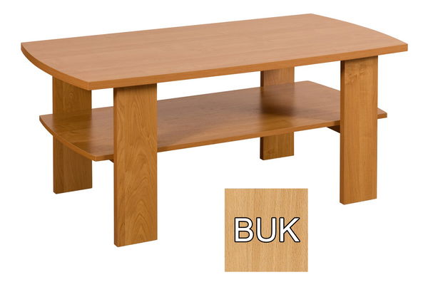 Elegantný konferenčný stolík s poličkou na odkladanie. Kratšie strany hornej dosky majú oblý tvar.