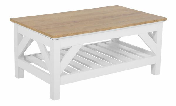 - Konferenčný stolík Seville (biela) (s doskou z prírodného dreva)