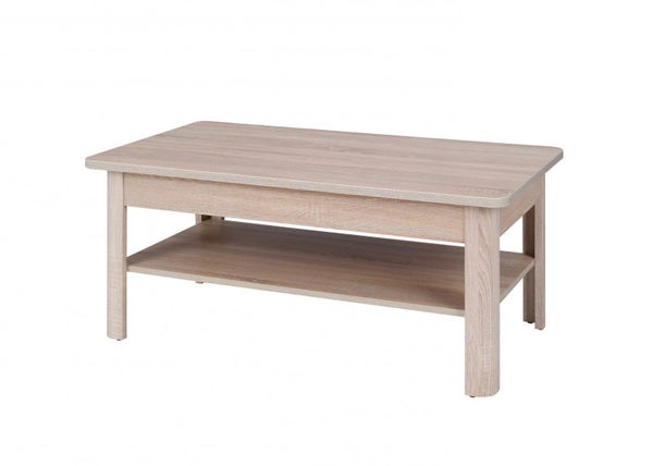 Nemáte si kam odložiť šálku s kávou, ovládač, či obľúbenú knižku? Štýlový konferenčný stolík bude určite veľmi praktickým doplnkom vo Vašej obývacej izbe. Stolík má v spodnej časti odkladaciu poličku. Rohy konferenčného stolíka sú zaoblené.