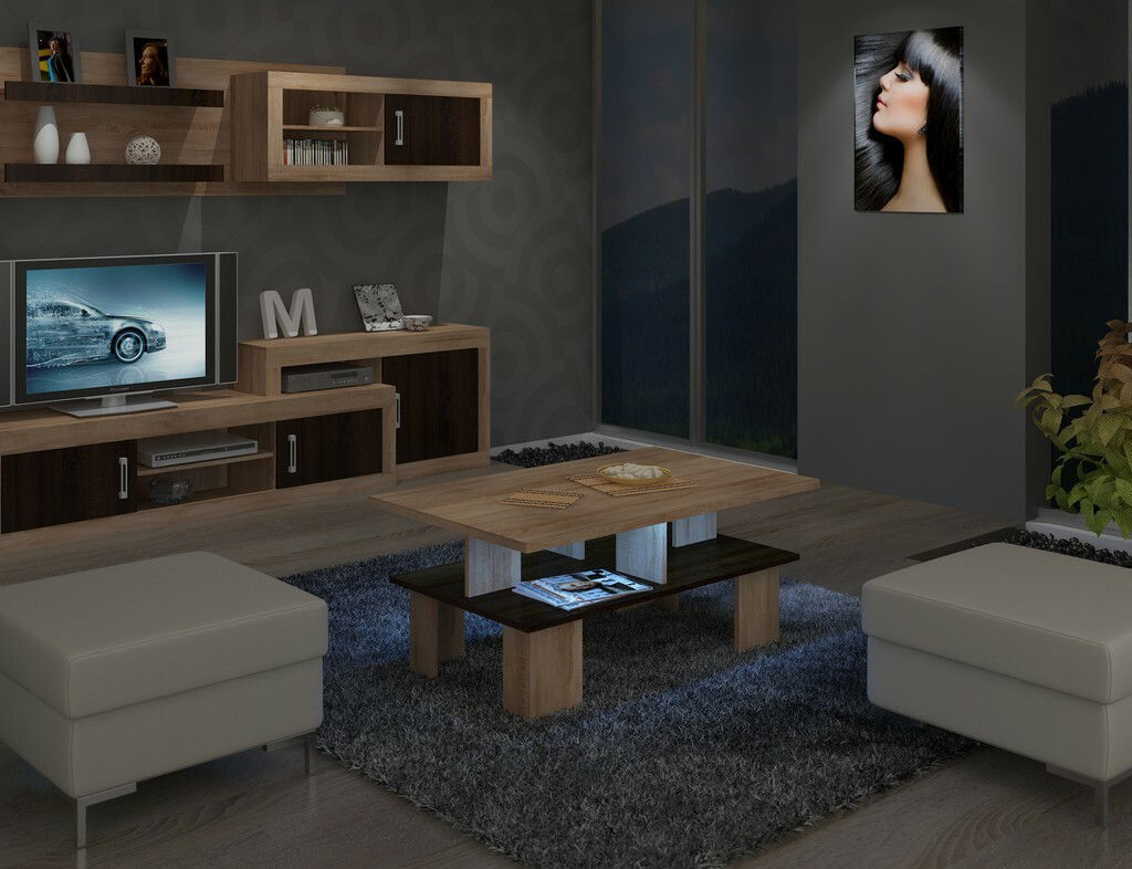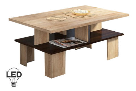 ZobraziťDizajnovo prepracovaný konferenčný stolík bude moderným kusom nábytku vo Vašej miestnosti. Ale len v dizajne nespočíva jeho jedinečnosť. Tú ešte ukáže po zotmení. Voliteľné LED osvetlenie vyzerá super a dodá nábytku a miestnosti úžasný efekt. Je to novinka na trhu s nábytkom. Konferenčný stolík má aj praktickú poličku, ktorá slúži na odkladanie novín, ovládača od TV, proste vecí, ktoré chcete mať vždy poruke. Umiestniť ho môžete do obývacej izby, pracovne, kancelárie alebo vo vstupnej hale. Hrúbka hornej dosky stolíka je 25 mm. Farebné prevedenie je sonoma svetlá v kombinácii so sonomou tmavou.