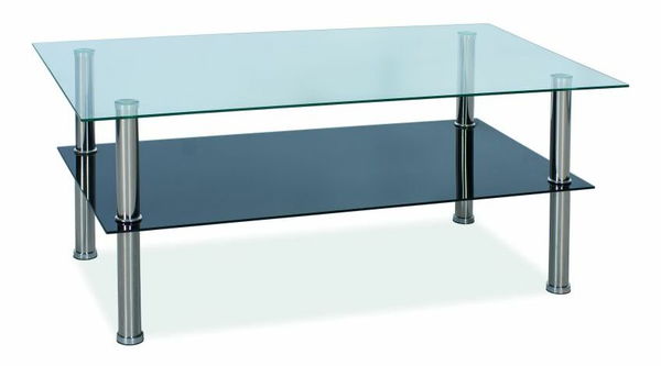 Elegantný konferenčný stolík Tessa sa bude krásne vynímať vo Vašej obývačke či pracovni. Stolík sa skladá z dvoch úrovní, ktoré sú rozmerovo totožné, obe sú taktiež z tvrdeného skla, kde vrchná časť je z priehľadného skla a spodná odkladacia časť je z čierneho skla.