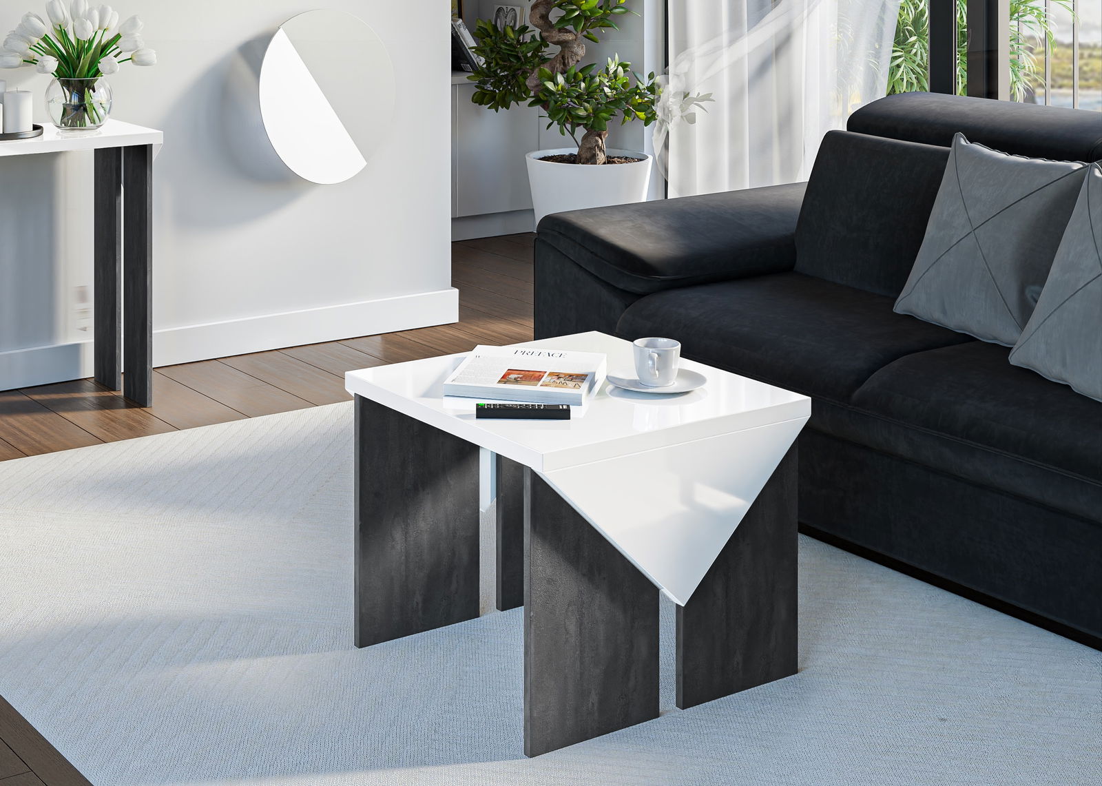 Konferenčný stolík Tarni (lesk biely + tmavosivá)