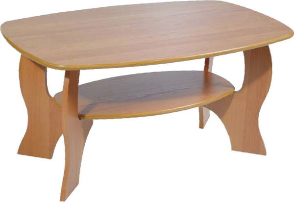 Elegantný konferenčný stolík zaobleného tvaru hornej dosky s masívnymi nožičkami zaujímavého esovitého tvaru. Stolík má menšiu poličku na odkladanie.