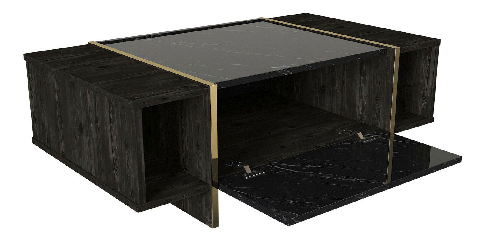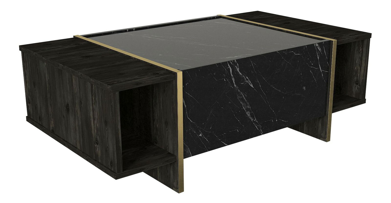 ZobraziťKonferenčný stolík Veya je moderný a elegantný stolík, ktorý sa bude skvele hodiť do akéhokoľvek interiéru. S výškou 37.3 cm a veľkosťou 103.8 cm x 60 cm, ponúka dostatok miesta na odkladanie rôznych predmetov a pohodlné miesto pre kávu alebo čaj s priateľmi. Stolík je vyrobený z kvalitnej 100% melamínovej dosky, ktorá zaručuje dlhú životnosť a odolnosť voči poškodeniu. Čierna farba kombinovaná s elegantnými zlatými detailmi dodáva stolíku luxusný a nadčasový vzhľad. Konferenčný stolík Veya je skvelou voľbou pre tých, ktorí hľadajú spojenie funkčnosti a dizajnu.