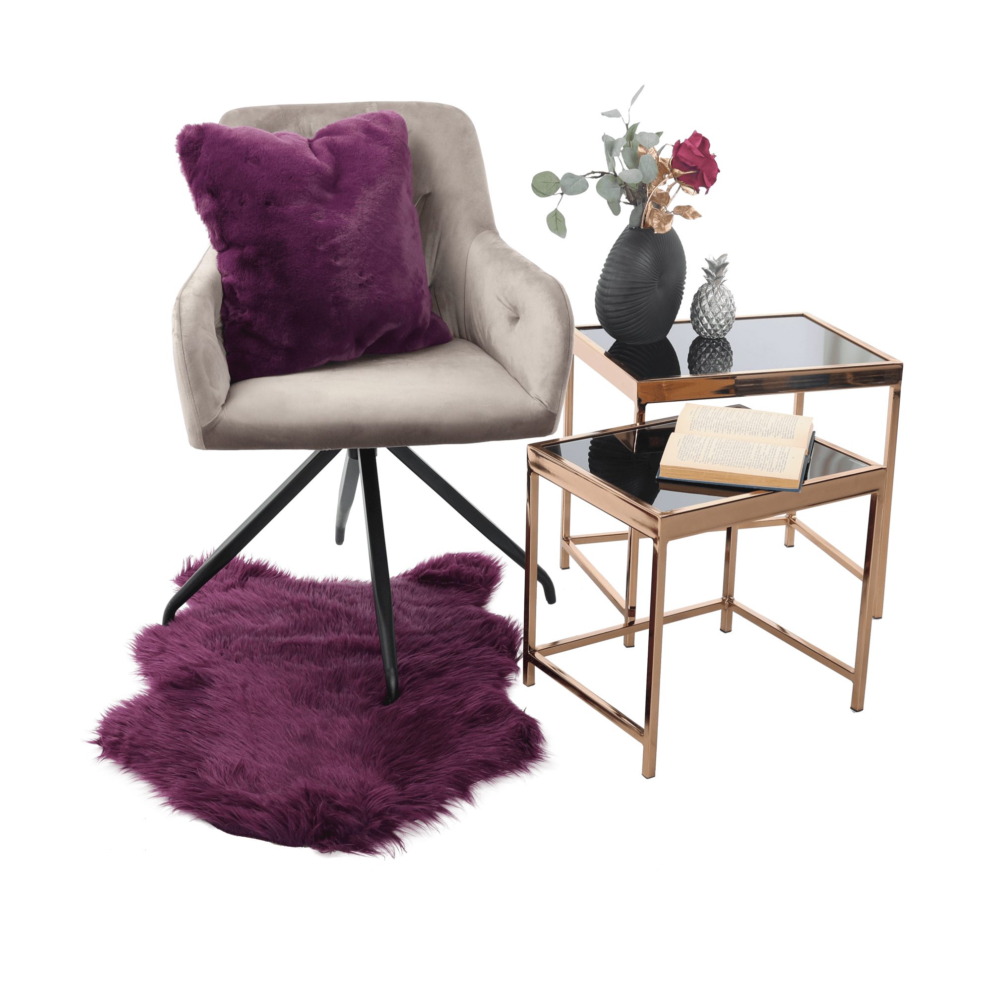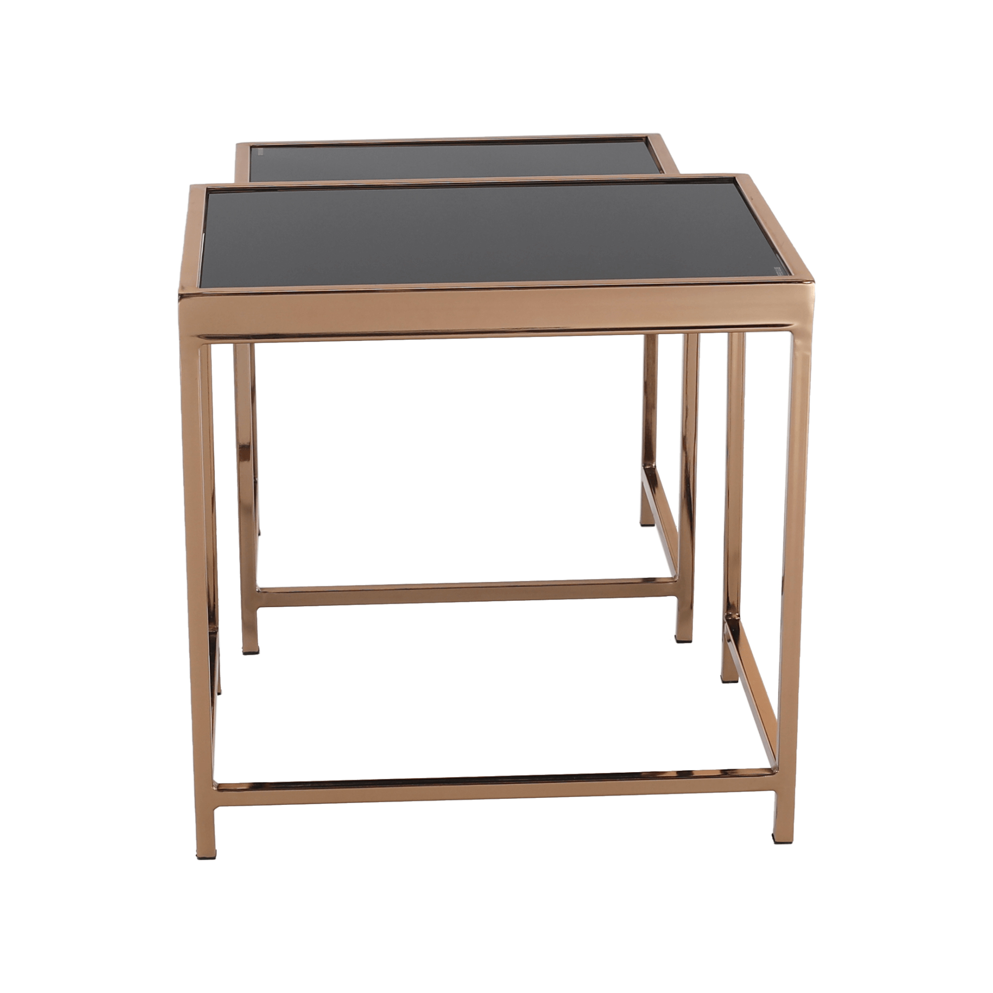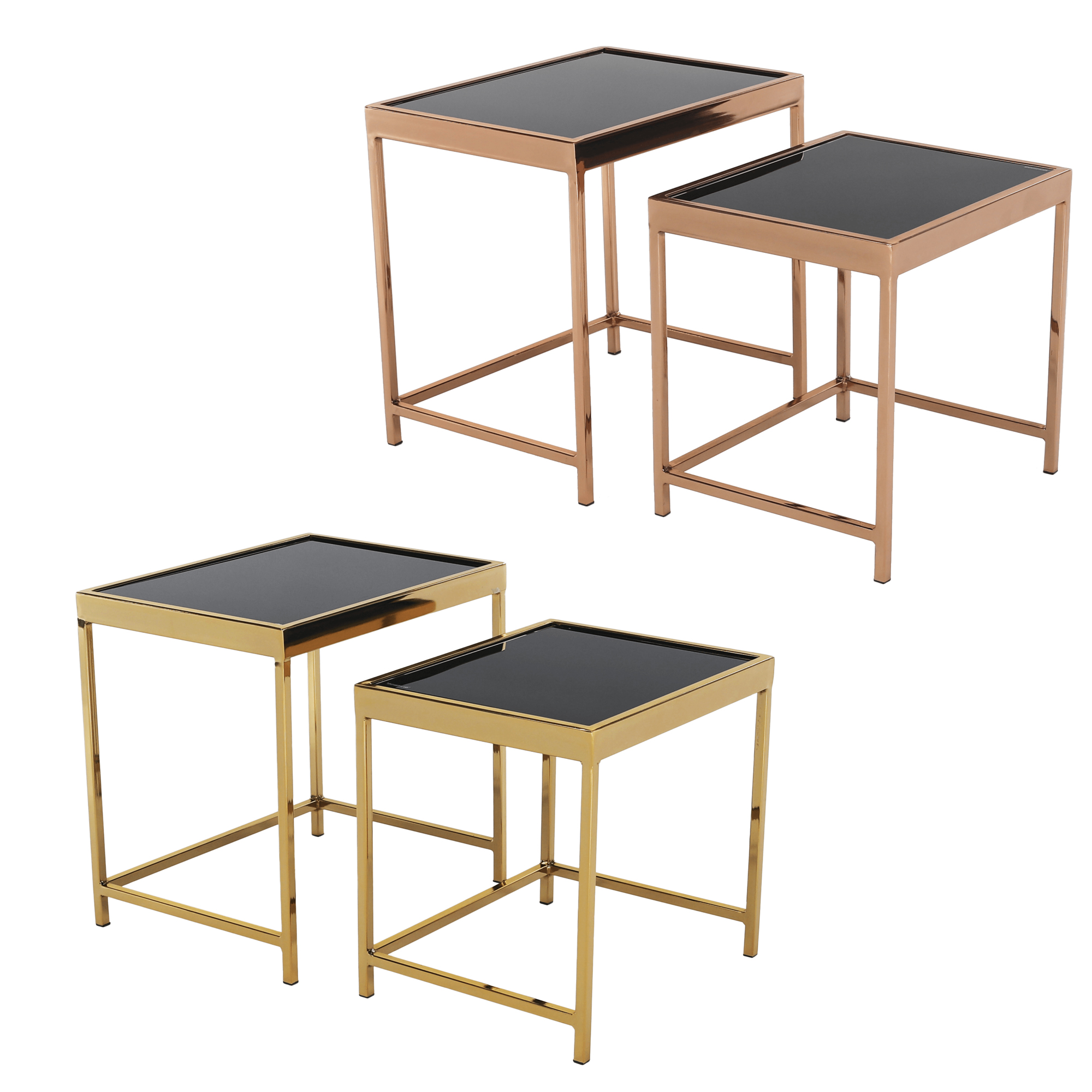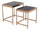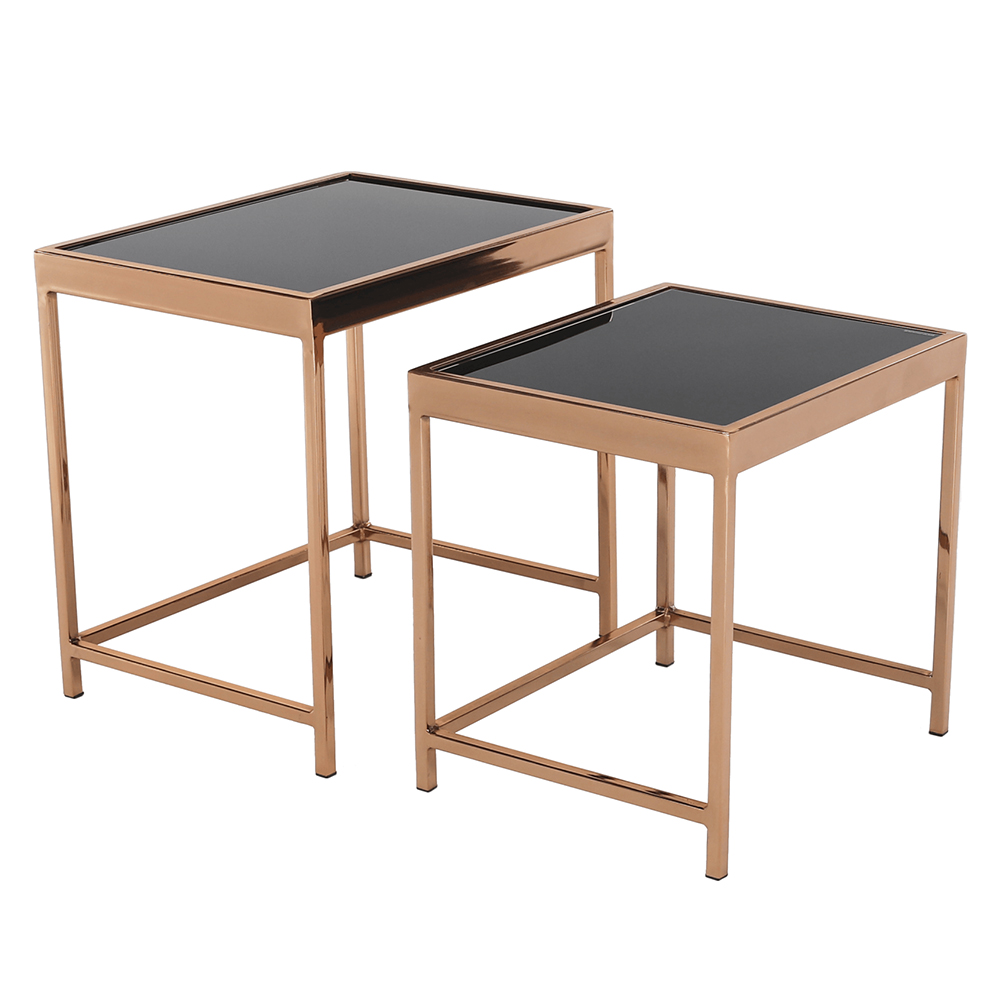 Prečo len jeden, ak môžete mať hneď dva? Reč je o konferenčných stolíkoch Vivien. Tento štýlový a jedinečný dizajnový set pozostávajúci z 2 kusov stolíkov by mal zdobiť centrálnu časť vašej obývacej izby. Konštrukcia je vyrobená z kovu v prevedení ružová zlatá. Vrchnú čast tvorí tvrdené sklo v čiernej farbe. Stolíky Vivien sa zaručene stanú dominantou vašej domácnosti.