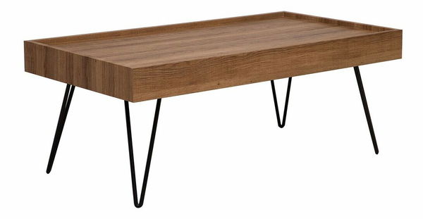Tento konferenčný stolík v industriálnom dizajne sa stane štýlovým stredobodom interiéru. Moderný dizajn kontrastuje s kovovými nohami a vrchnou doskou vo farbe tmavého dreva. Stolová doska má taktiež vyvýšené okraje, takže všetko, čo naň položíte, zostane na svojom mieste.