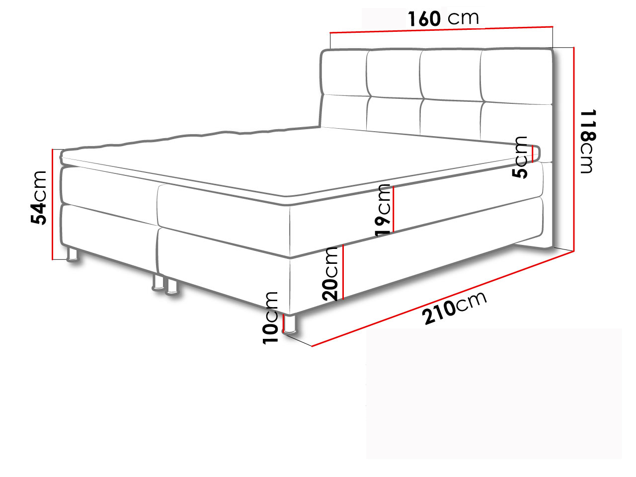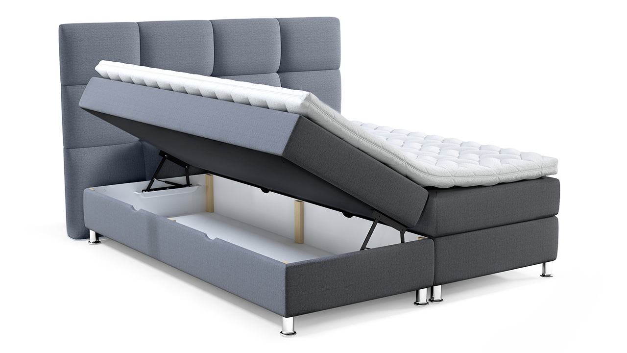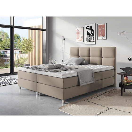 Luxusná kontinentálna posteľ s prešívaným čelom postele zabezpečí dokonalý spánok. Poťah je z látky.