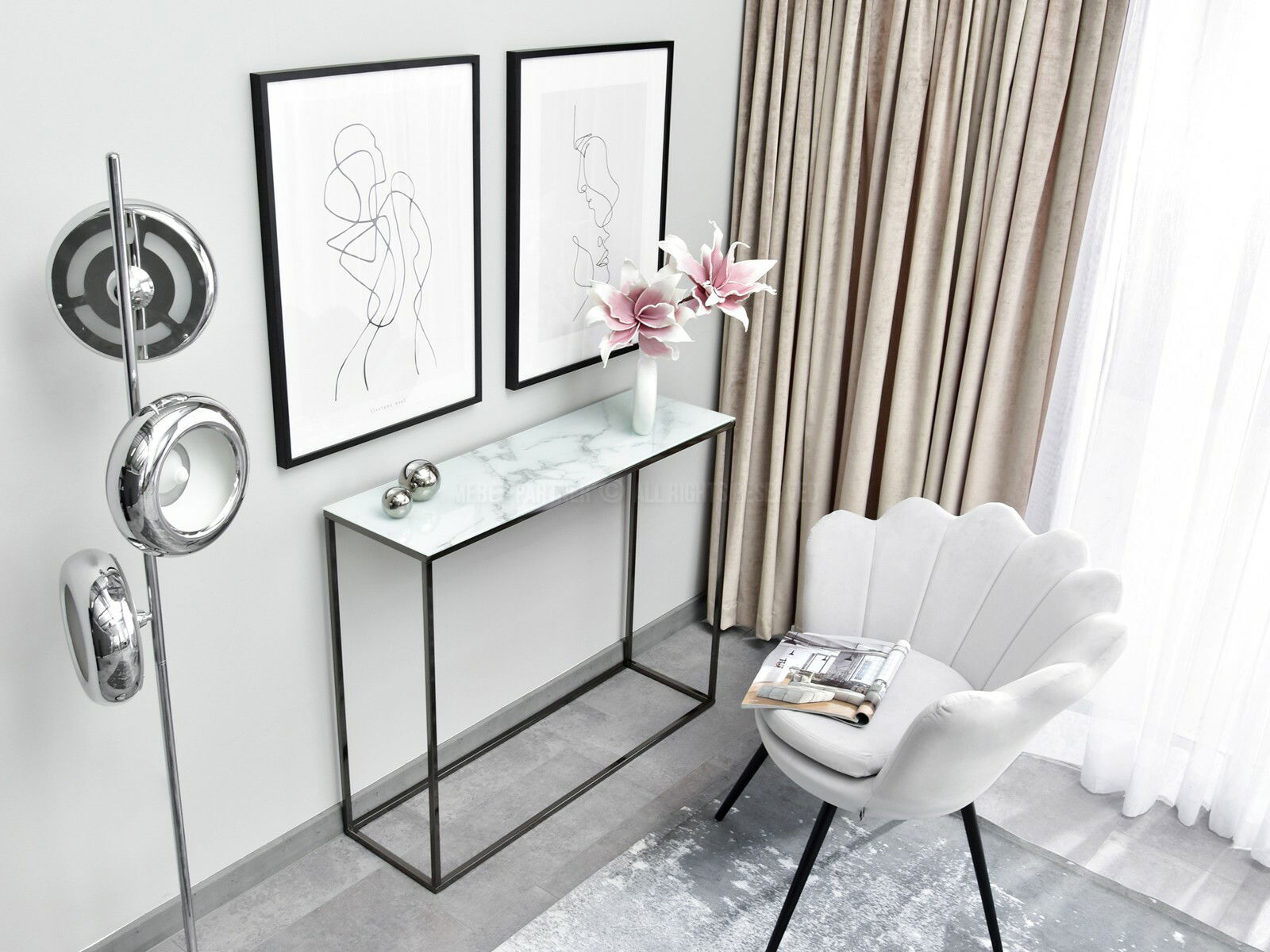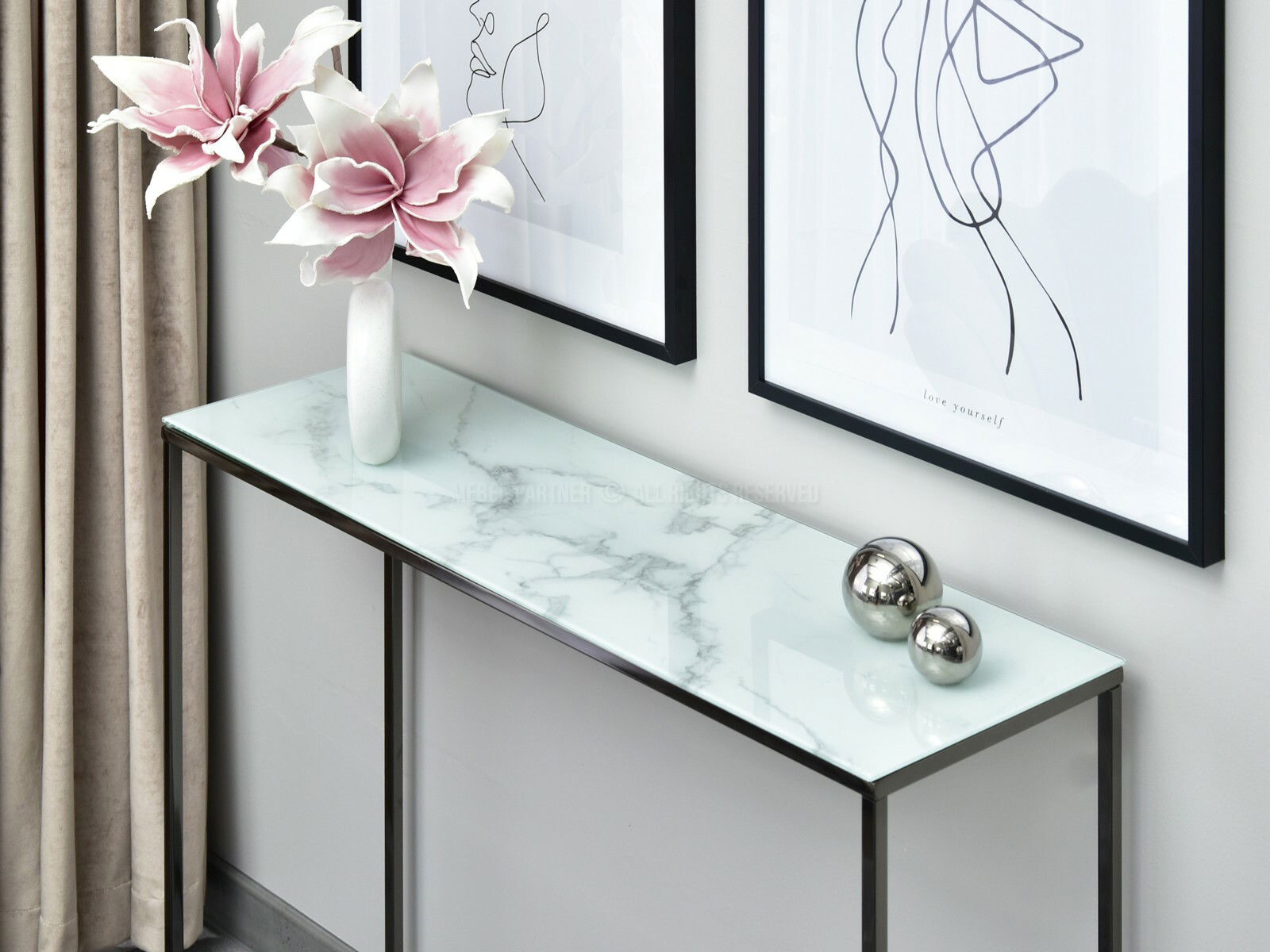 Konzolový stolík Bella Kons (biely mramor + čierna)