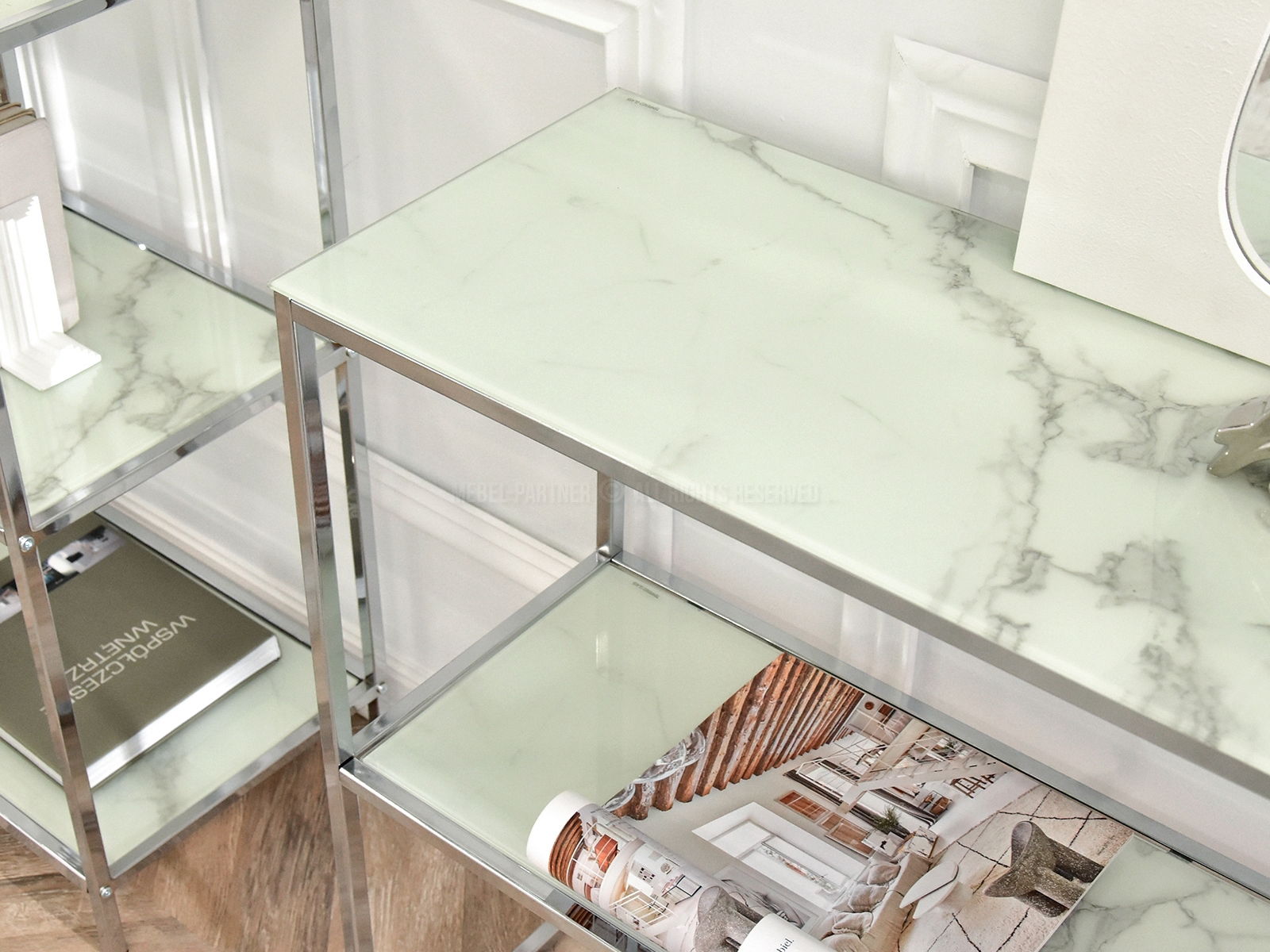 Konzolový stolík Bella Kons Bis (biely mramor + chrómová)