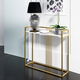 Konzolový stolík je skutočnou hviezdou interiérového dizajnu! Bol vytvorený s ohľadom na štýl a praktickosť. Jeho zlatý rám je vyrobený z ocele. Spolu so štýlovou vrchnou doskou pôsobí skutočne jedinečne.Táto všestranná konzola je skutočným majstrom funkčnosti! S maximálnou nosnosťou 80 kg vám poskytne nielen robustnosť, ale aj dostatok priestoru na uloženie a vystavenie vašich obľúbených predmetov. Je ideálna do predsiene a stane sa štýlovým akcentom, ktorý vás privíta hneď po vstupe do domu. V spálni zasa môže slúžiť ako elegantný toaletný stolík, na ktorom sa budete pripravovať na každý nový deň.