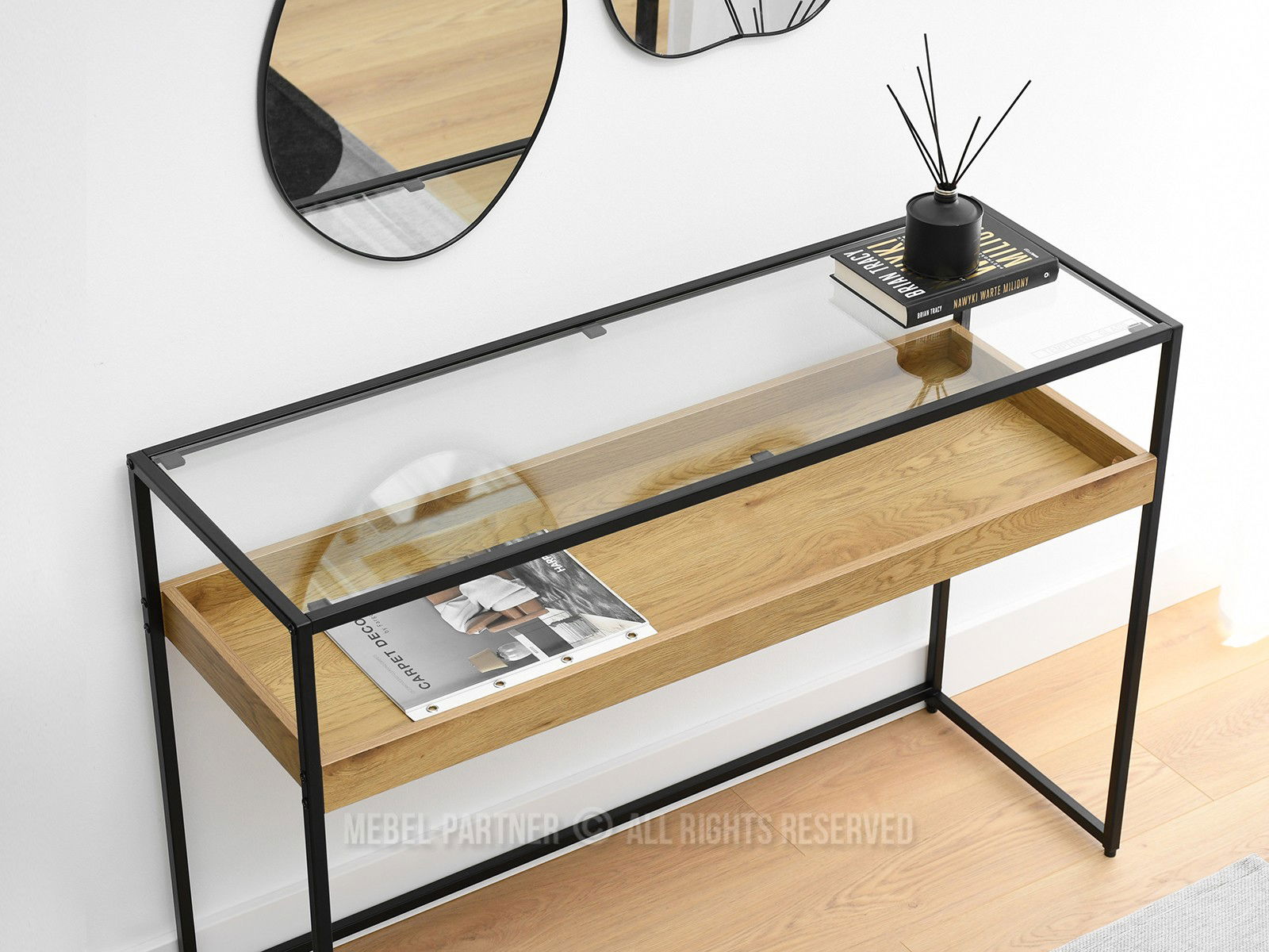 ZobraziťKonzolový stolík Eliash: Kombinácia dubového dreva a čierneho kovu
