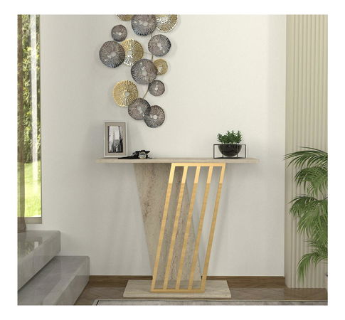 Konzolový stolík Glumy (zlatá + travertín)