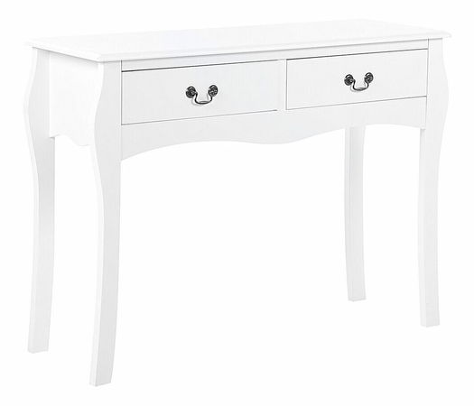 Praktický a dekoratívny kus nábytku, ktorý je vhodným doplnkom do obývacej izby alebo predsiene. Tento konzolový stolík v rustikálnom štýle môžete využiť na vystavenie kníh, dekorácií alebo iných doplnkov. Vďaka svojmu jednoduchému dizajnu je skutočne nadčasovým kúskom. Má dve priestranné zásuvky s ozdobnými kovovými úchytkami a je výbornou voľbou do interiérov inšpirovaných francúzskym vidieckym štýlom.