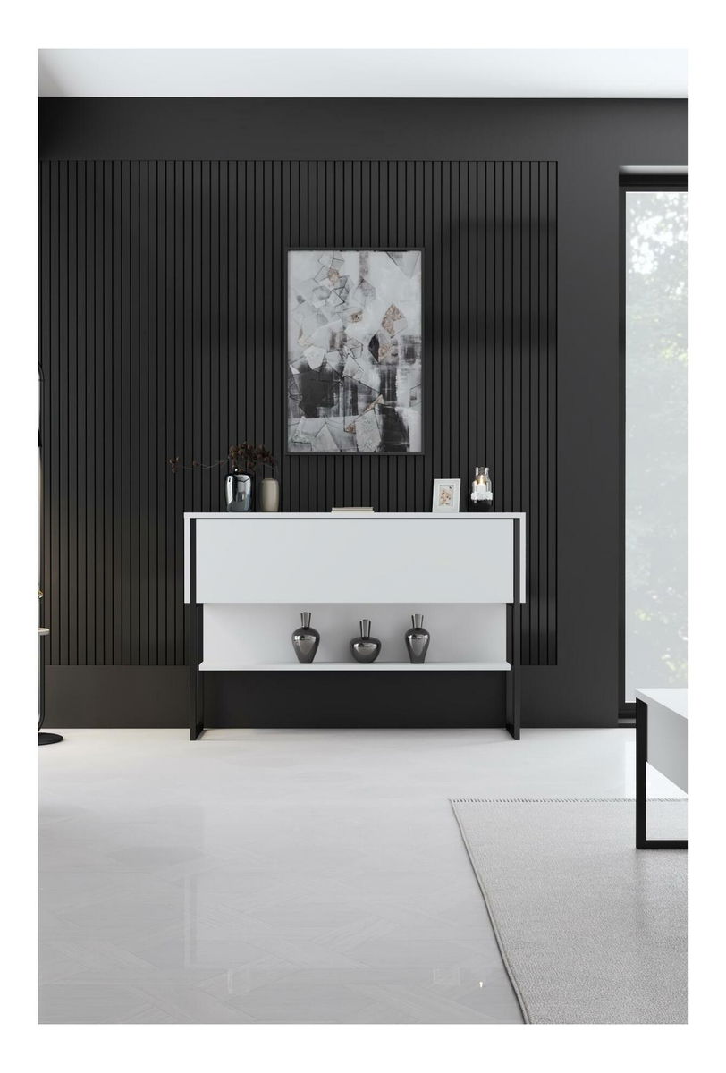 Konzolový stolík Luna 4 v modernom prevedení čiernej a bielej farby je ideálnym doplnkom do každého interiéru. Jeho minimalistický dizajn a čisté línie sú v súlade s najnovšími trendmi v nábytku do obývačiek, predsiení alebo jedální.