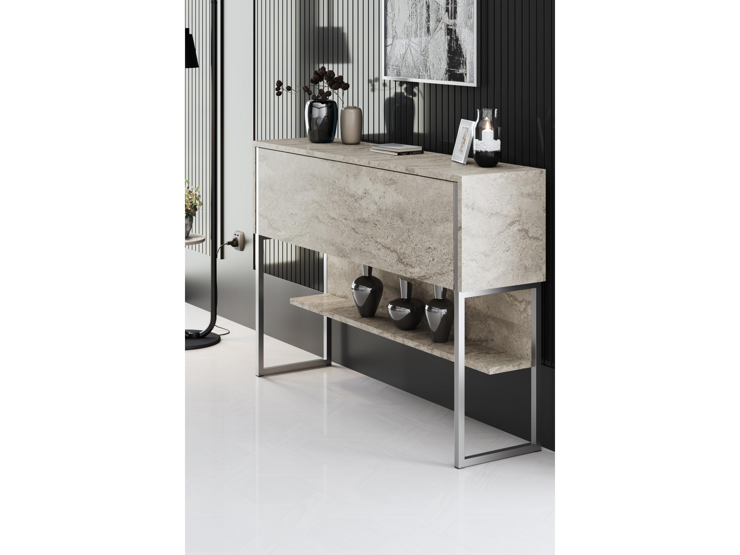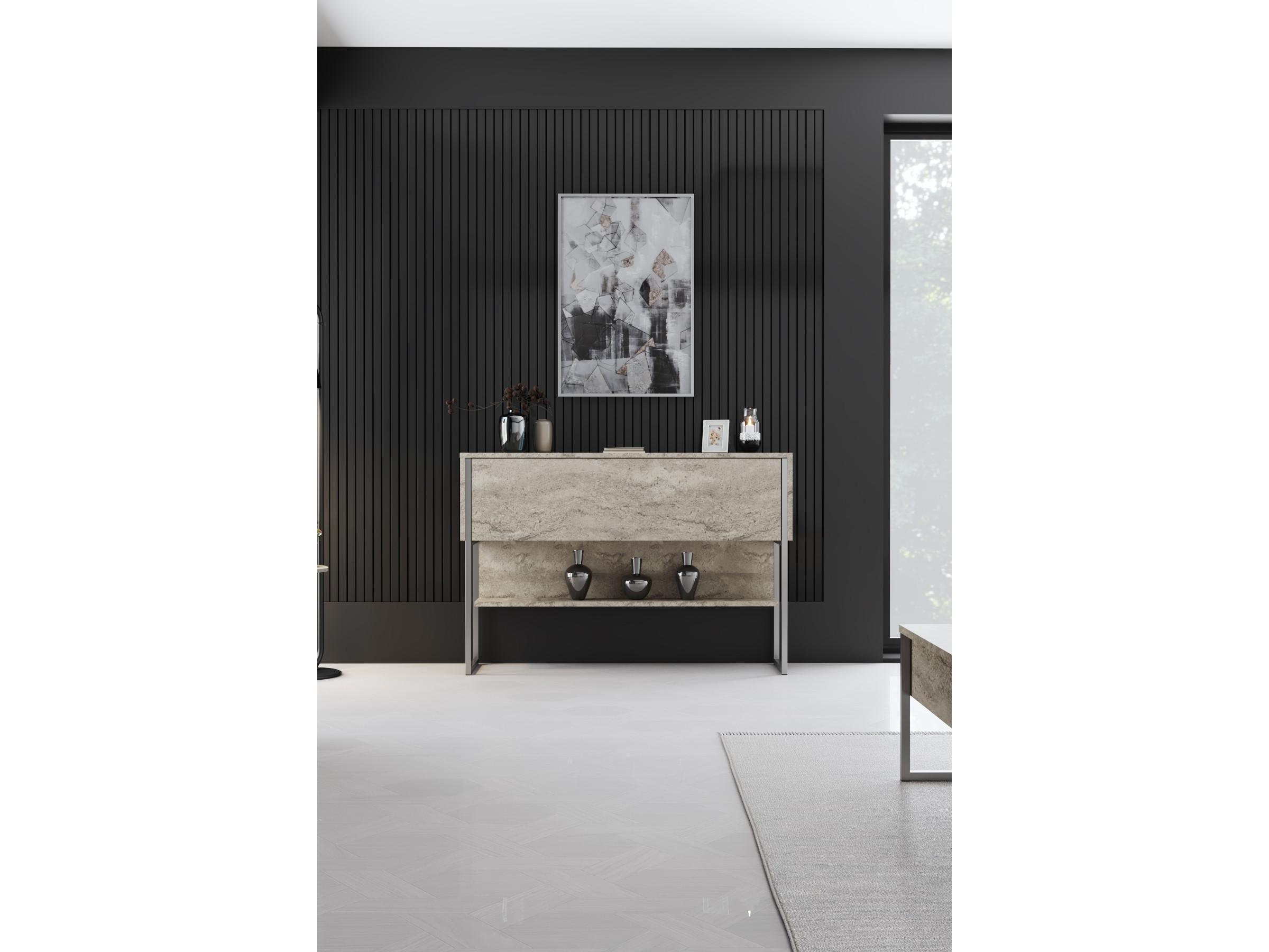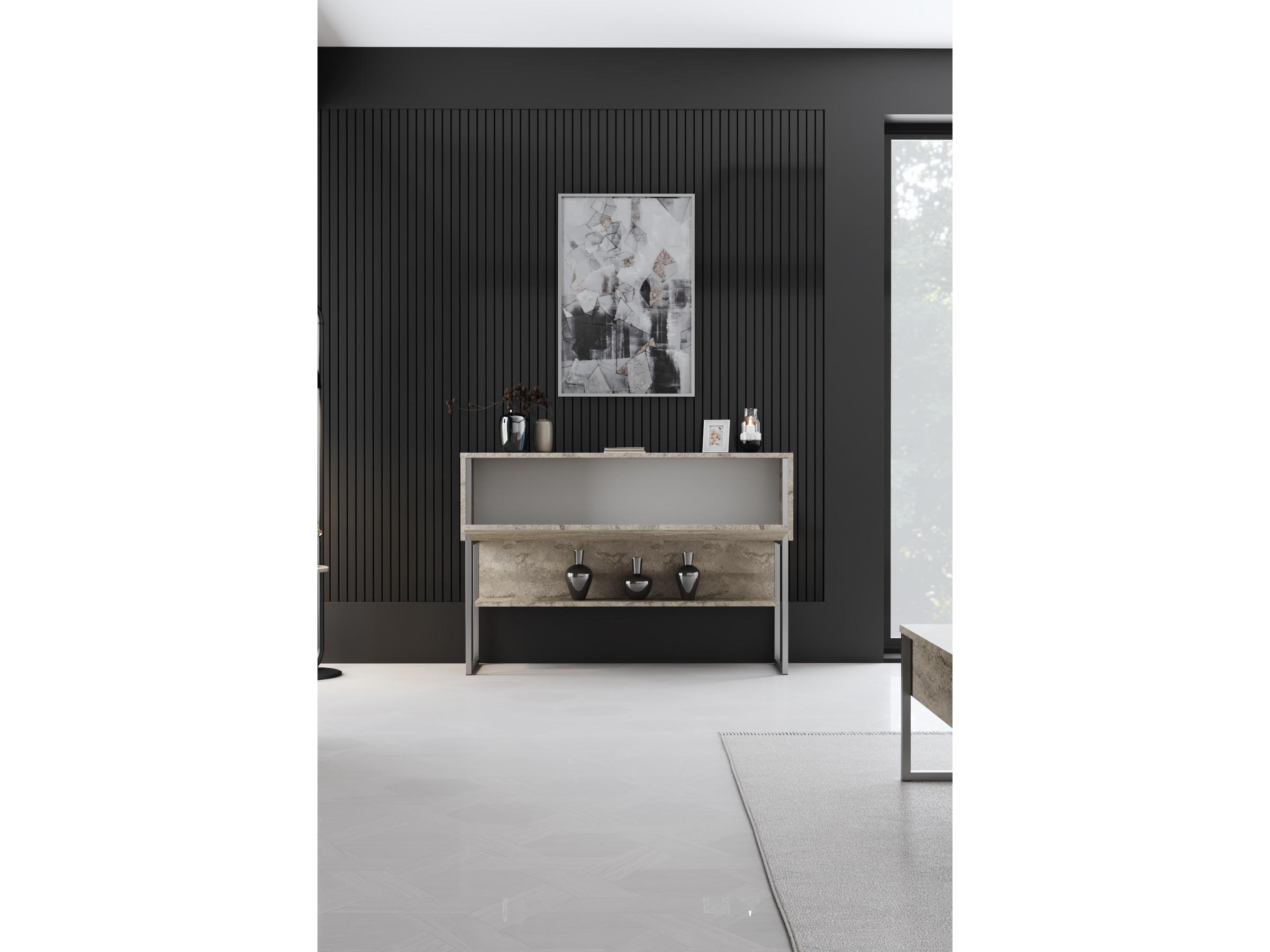 Konzolový stolík Luna 4 v kombinácii povrchovej úpravy travertínu a moderných strieborných prvkov je riešením pre váš interiér. Jeho minimalistický dizajn skvele dopĺňa rôzne štýly zariadenia od moderného po industriálny či skandinávsky.