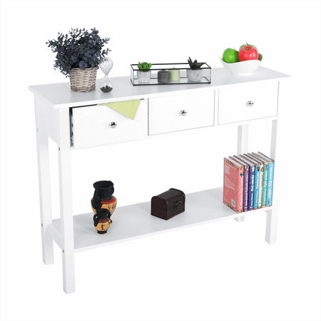 Konzolový stolík Niro (biela) je vynikajúcim doplnkom pre vašu domácnosť. Stolík má výšku 74 cm a hĺbku 30 cm, čo ho robí ideálnym na umiestnenie v úzkom priestore. Jeho biela farba a kombinácia materiálov MDF a kov vytvárajú moderný vzhľad, ktorý sa hodí do každého interiéru. Stolík ponúka dostatok úložného priestoru s tromi zásuvkami a jednou policou. Kovové úchytky pridávajú stolíku ešte elegantnejší vzhľad. Stolík je dodávaný v demonte, takže ho môžete ľahko a rýchlo zostaviť sami. Konzolový stolík Niro je skvelou voľbou pre tých, ktorí hľadajú praktický a moderný nábytok pre svoju domácnosť.