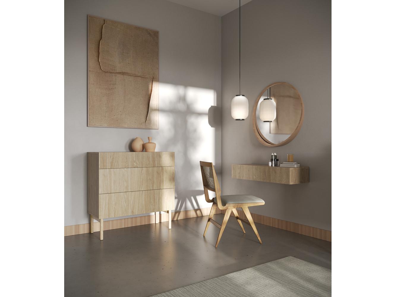 Snívate o interiéri, v ktorom sa snúbi minimalizmus japonského dizajnu s teplom škandinávskeho dreva? Objavte kolekciu a vneste do svojho bytu pokoj, eleganciu a funkčnosť Konzola je harmonickým spojením funkčnosti a estetiky v japonskom štýle! Nábytok je vyrobený z odolnej laminovanej dosky a MDF dosky s klasickými a prírodnými farebnými čelami, čo dodáva interiéru prirodzenú a príjemnú estetiku. Zásuvka bola navrhnutá s ohľadom na funkčnosť a vybavená systémom push to open, ktorý umožňuje jednoduché a bezproblémové otváranie. Toaletný stolík vďaka možnosti zavesenia získava ľahkosť a sofistikovanosť pri zachovaní funkčnosti a nezaťažuje priestor. Priestranná stolová doska bude ideálnym miestom na položenie elegantnej kytice, fotografií vašich blízkych alebo na rýchle odloženie kľúčov v predsieni. Japandi štýl je kombináciou jednoduchosti a útulnosti a kolekcia dokonale odráža túto rovnováhu Detaily produktu: korpus vyrobený z laminovanej dosky vo farbe R20348 Oiled Oak, hrúbka 16 mm, odolný voči vlhkosti, teplote a poškriabaniu, frézované predné strany vyrobené z made. z MDF dosky potiahnutej fóliou vo farbe korpusu, push to open systém použitý na čelách uľahčuje plynulé otváranie a zatváranie nábytku, konštrukcia vystužená 0,5 mm ABS hranami, zásuvka uložená na 27 mm guľôčkových vodidlách, zaisťuje hladké a voľné rozšírenie.
