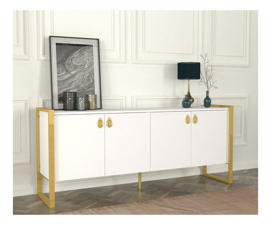 Konzolový stolík Nubulo 1 (biela + zlatá)