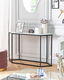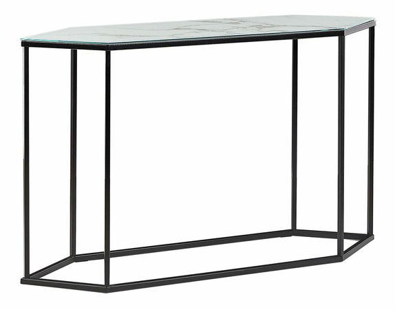 Tento konzolový stolík v jedinečnom geometrickom tvare bude elegantným doplnkom vašej obývacej izby, spálne či chodby. Dodáva sa so stolovou doskou z tvrdeného skla laminovanou PVC fóliou, ktorá vytvára mramorový efekt a vytvára elegantný vzhľad. Konštrukcia stolíka zaručuje stabilitu a jej čierna farba dokonale kontrastuje s vrchnou doskou.